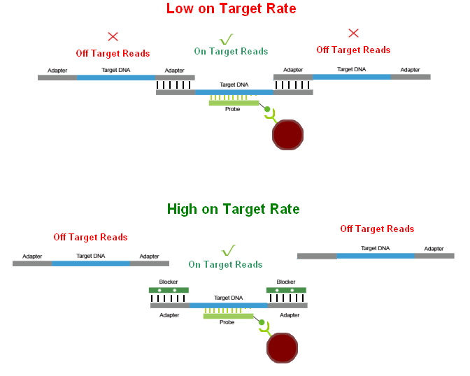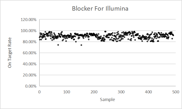 Universal Blocker for Illumina是針對(duì)Illumina 平臺(tái)普通DNA文庫(kù)開(kāi)發(fā)的適用于液相雜交捕獲通用型接頭封阻序列,可有效減少雜交過(guò)程中因接頭之間退火而造成的不同文庫(kù)分子之間形成的串聯(lián)結(jié)構(gòu),從而降低非特異性雜交。 適用于Illumina Truseq測(cè)序平臺(tái)的液相雜交捕獲通用封阻斷序列。 適用于6 - 10 bp Index Barcode。 適用于含UMI序列的接頭文庫(kù)。 顯著降低接頭之間的非特異性結(jié)合,提高中靶率和富集程度。 在相同測(cè)序數(shù)據(jù)量情況下,顯著提升有效測(cè)序深度。