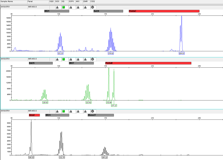 微衛(wèi)星是人類基因組的一段串聯(lián)重復(fù)序列,一般在1~6bp之間,又被稱作短串連重復(fù)(Short Tandem Repeats,STRs)或簡(jiǎn)單重復(fù)序列(Simple Sequence Repeat,SSRs)。 微衛(wèi)星不穩(wěn)定(Microsatellite Instability,MSI)指的是微衛(wèi)星重復(fù)次數(shù)減少或者增加,微衛(wèi)星不穩(wěn)定的內(nèi)在機(jī)制是錯(cuò)配修復(fù)(MMR)系統(tǒng)失調(diào),從而限制了糾正微衛(wèi)星自發(fā)的長(zhǎng)度改變的體細(xì)胞突變的能力,體細(xì)胞突變積累,最終形成MSI。