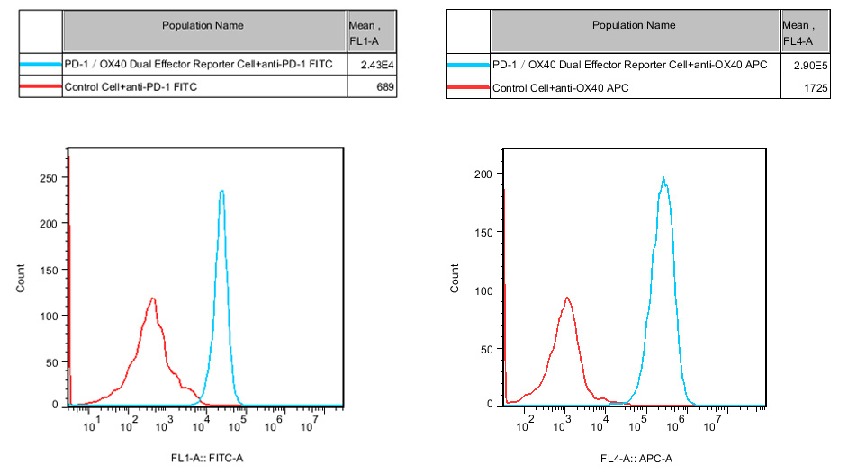 Figure 2. Recombinant PD1&OX40 Dual Effector Reporter Cell constitutively expressing PD1 and OX40.