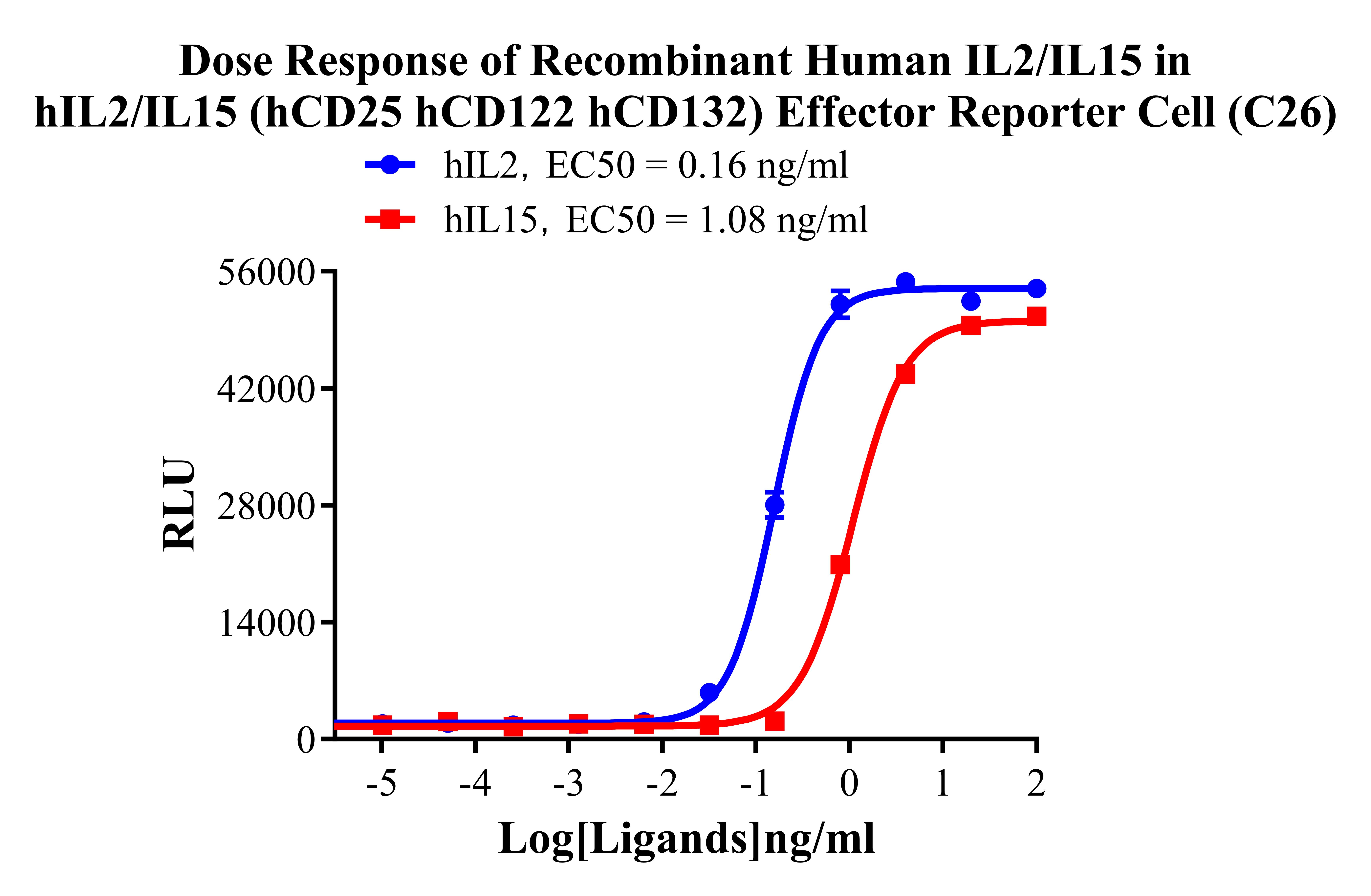 Figure 3. Dose Response of Recombinant Human IL2/IL15 in hIL2/IL15 (hCD25 hCD122 hCD132) Effector Reporter Cell (C26). |