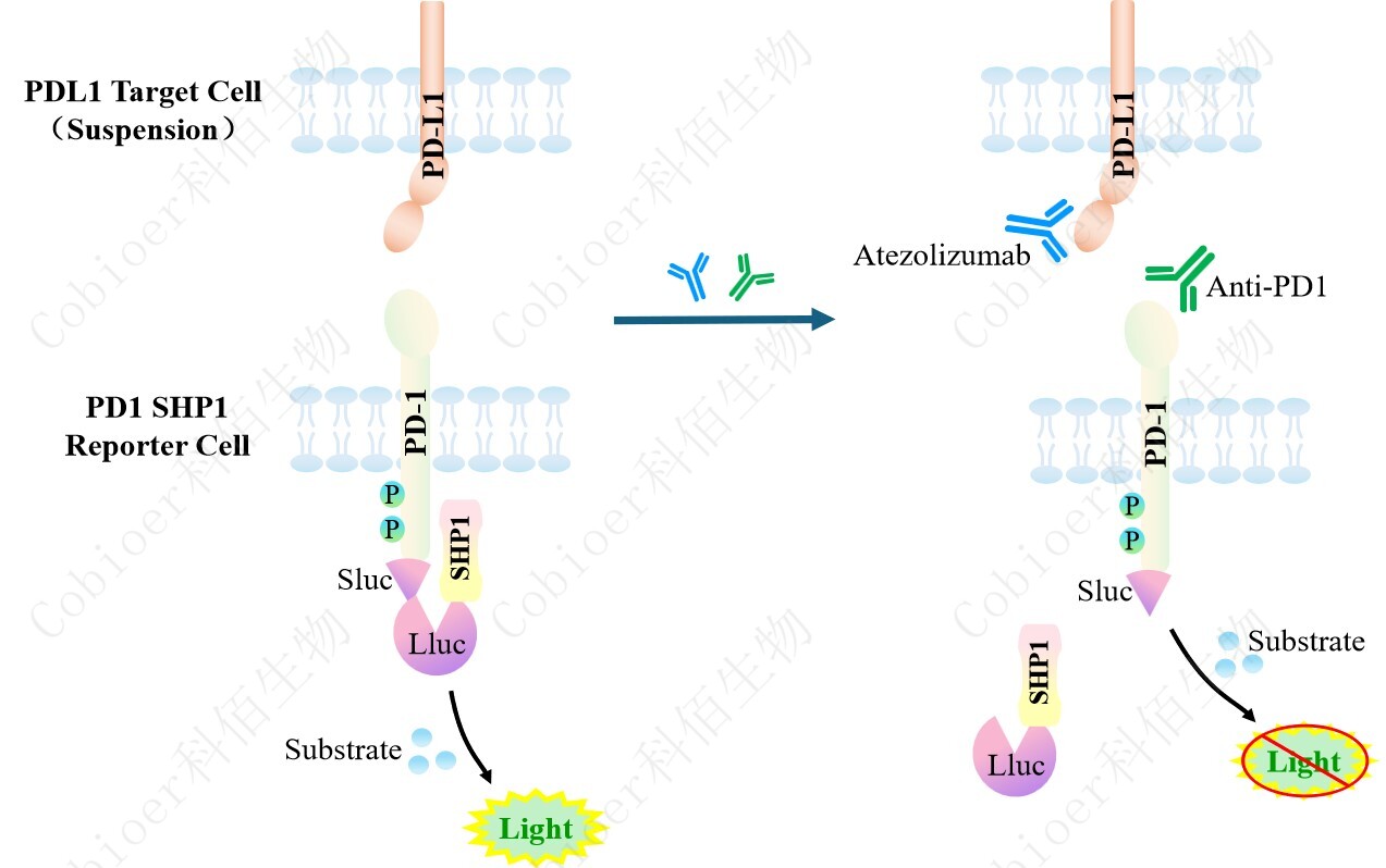 PD1 SHP1 Reporter Cell 報告基因藥靶模型很好的模擬了體內(nèi) PD1/SHP1 的信號轉(zhuǎn)導(dǎo)過 程,原理見下圖所示。![]() Figure 1. PD1 SHP1 Reporter Cell 細胞模型原理圖 |