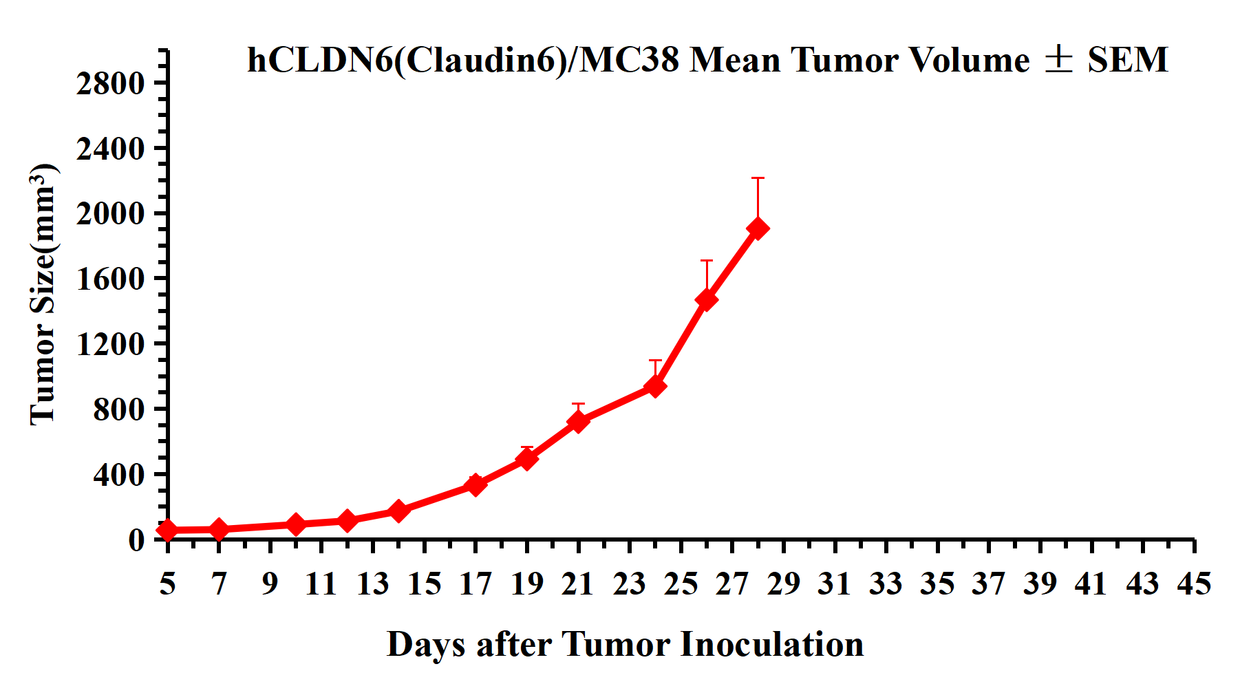 Figure 3. hCLDN6(Claudin6)/MC38 Mean Tumor Volume ± SEM .