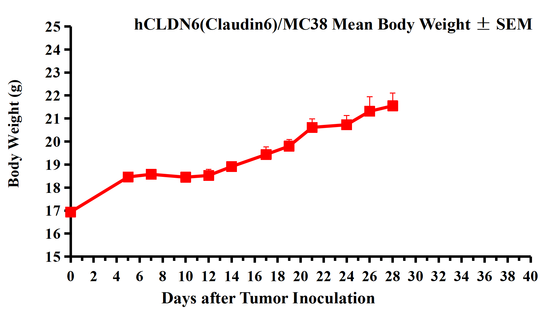 Figure 2. hCLDN6(Claudin6)/MC38 Mean Body Weight ± SEM.