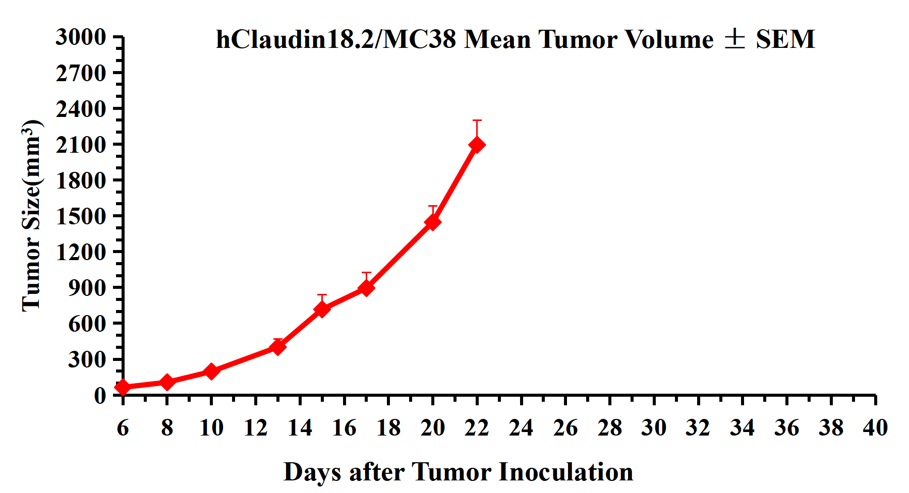 Figure 3. hClaudin18.2/MC38 Mean Tumor Volume ± SEM.