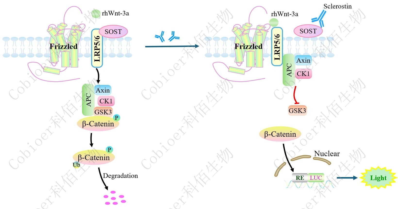 SOST Effector Reporter Cell 報告基因藥靶模型很好的模擬了體內(nèi) WNT 的信號轉(zhuǎn)導過程, 原理見下圖所示。![]() Figure 1. SOST Effector Reporter Cell 模型原理圖 |