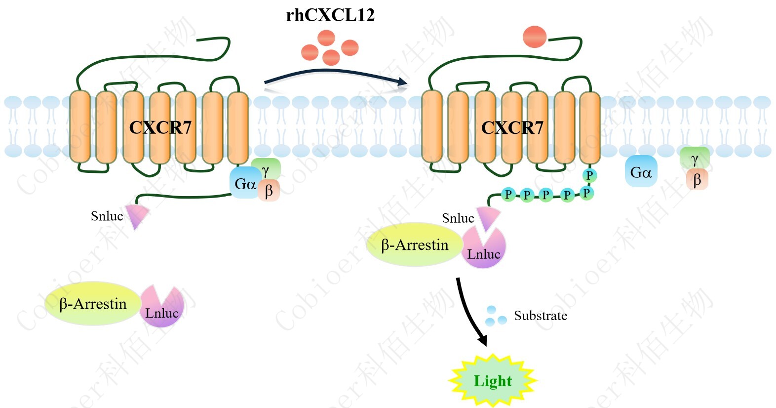 CXCR7 β-Arrestin CHO 報告基因藥靶模型很好的模擬了體內(nèi) CXCR7/β-Arrestin 的信號轉導過程,原理見下圖所示。