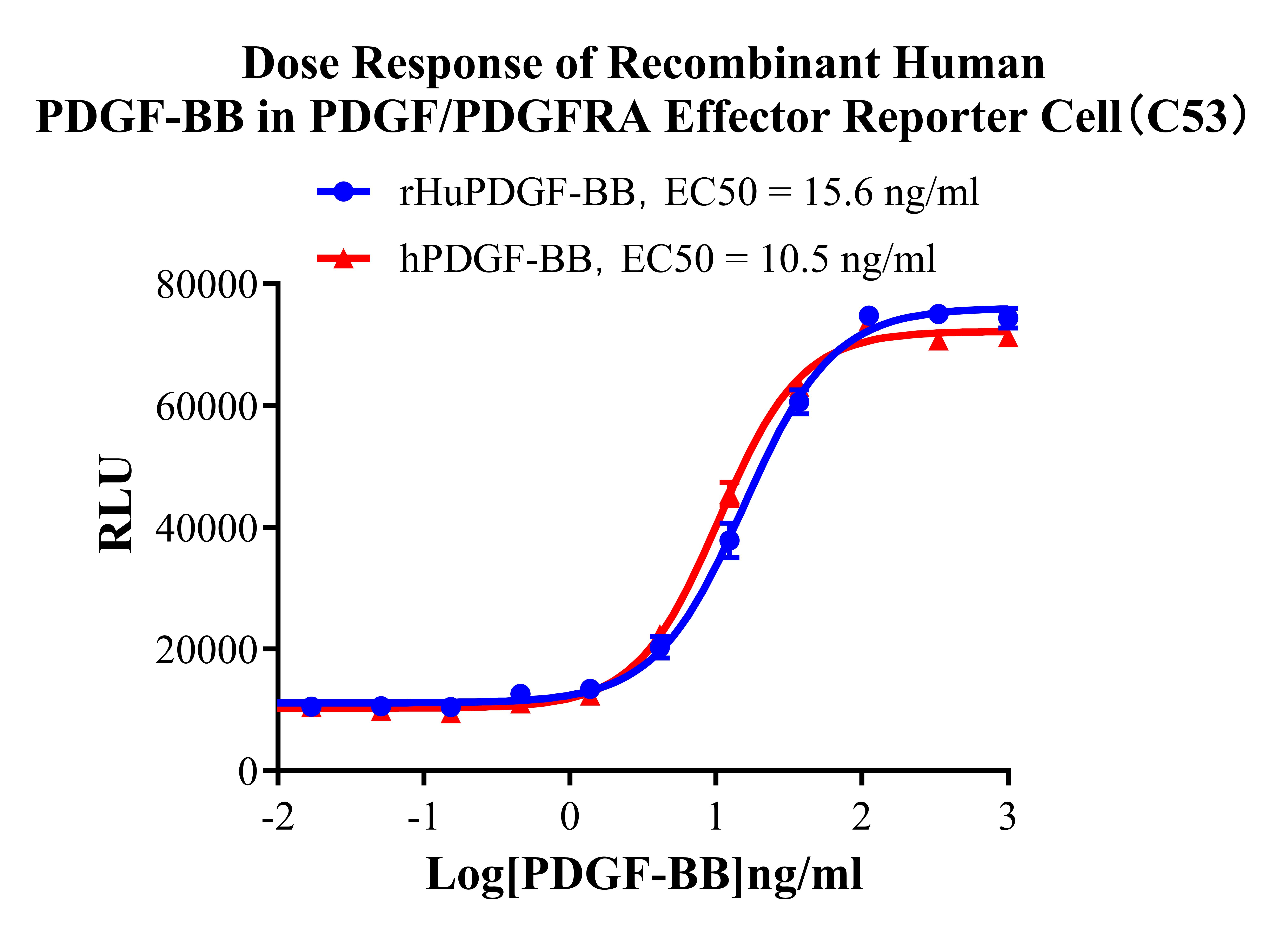 IV. Representative Data![]() Figure 2. Recombinant PDGF/PDGFRA Effector Reporter Cell stably expressing PDGFRA. ![]() Figure 3. Dose Response of Recombinant Human PDGF-BB in PDGF/PDGFRA Effector Reporter Cell(C53). ![]() Figure 4. Inhibition of Human PDGF-BB-induced Reporter Activity by PDGFB Neutralization Ab in PDGF/PDGFRA Effector Reporter Cell(C53). Inhibition of Human PDGF-BB-induced Reporter Activity by PDGFRA Blocking Ab in PDGF/DGFRA Effector Reporter Cel(C53). |