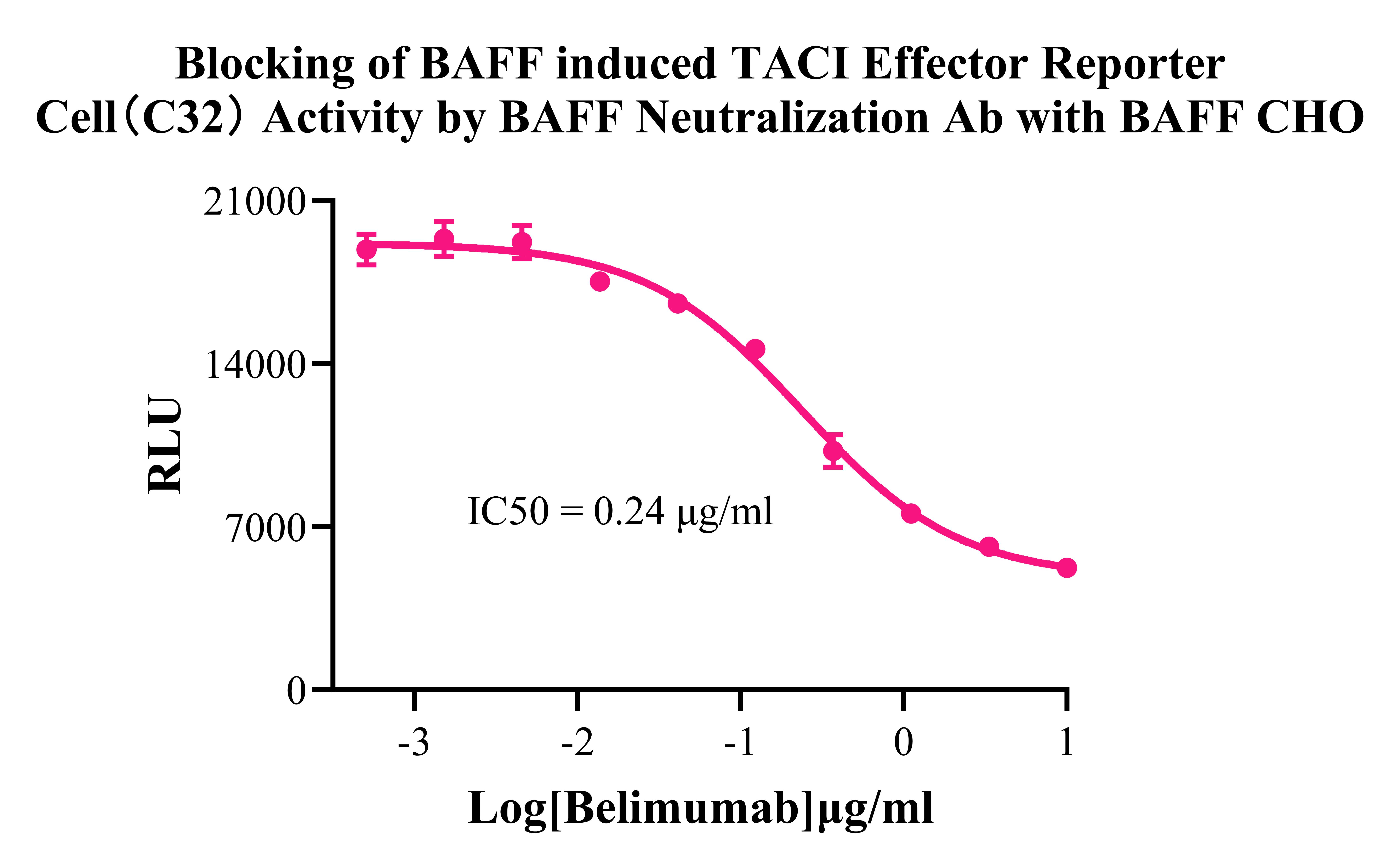 Figure 2. Blocking of BAFF induced TACI Effector Reporter Cell(C32) Activity by BAFF Neutralization Ab with BAFF CHO.