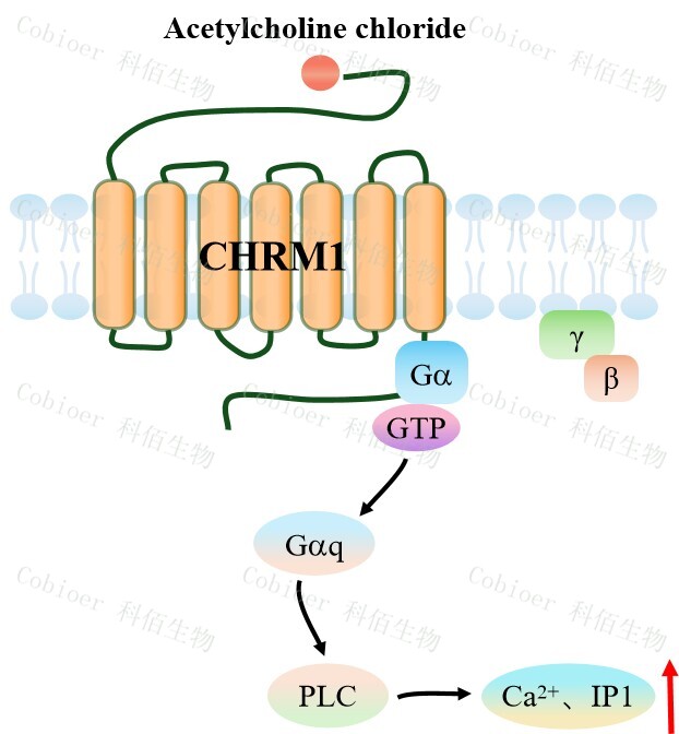 | CHRM1 通過 Gq 蛋白的信號通路,調(diào)控 IP1 的升高。CHRM1 與配體結合,導致 Gαq 亞基的激活,觸發(fā) PLC-γ,從而產(chǎn)生兩個第二信使:IP3 和 DAG,它們參與細胞內(nèi)鈣動員。 由于 IP3 在代謝上不穩(wěn)定,因此測量通路激活的替代標志物 IP1 作為檢測標準。 CHRM1 CHO 細胞藥靶模型很好的模擬了體內(nèi) CHRM1 的信號轉導過程,原理見下圖所示。 ![]() Figure 1. CHRM1 CHO 細胞模型原理圖 |