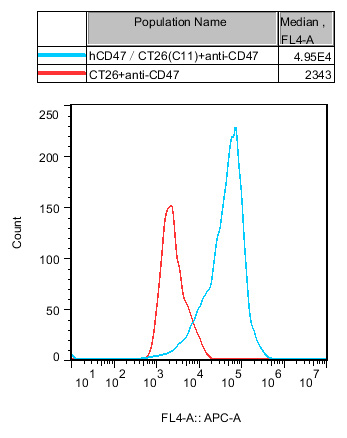 IV. Representative Data![]() Figure 1. Recombinant hCD47/CT26 stably expressing hCD47. |