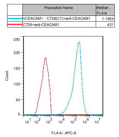 IV. Representative Data![]() Figure 1. Recombinant hCEACAM1/CT26 stably expressing hCEACAM1. |