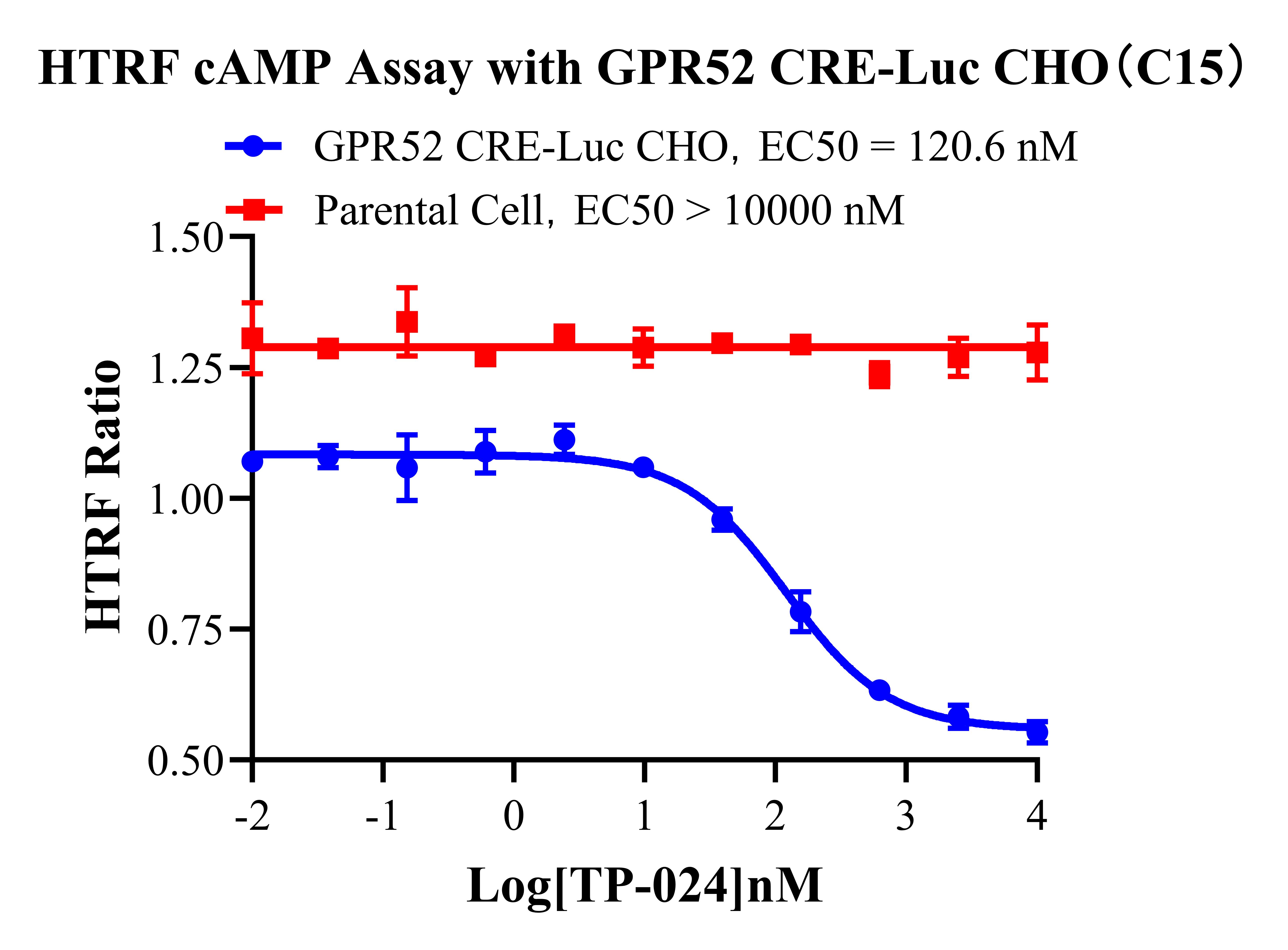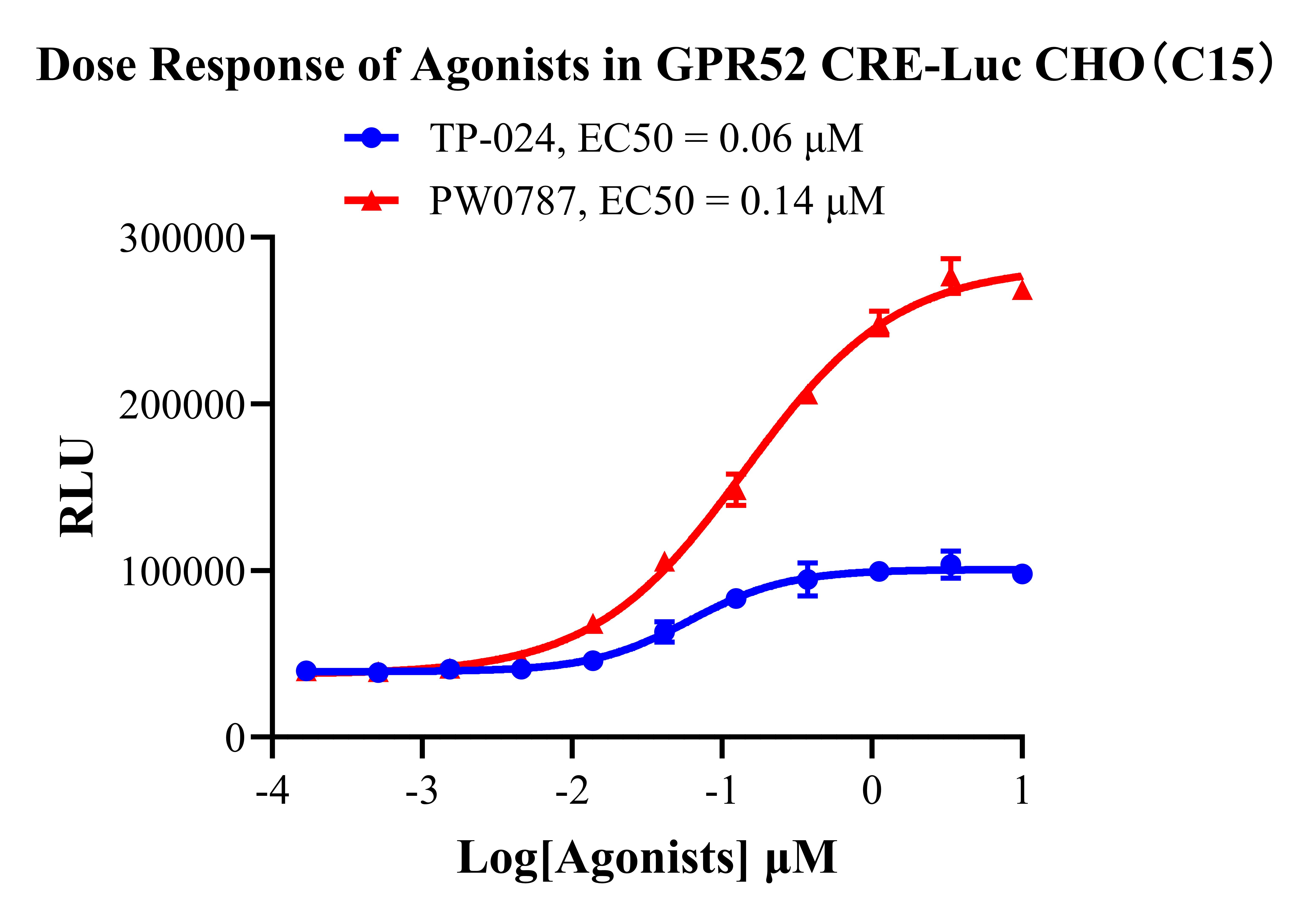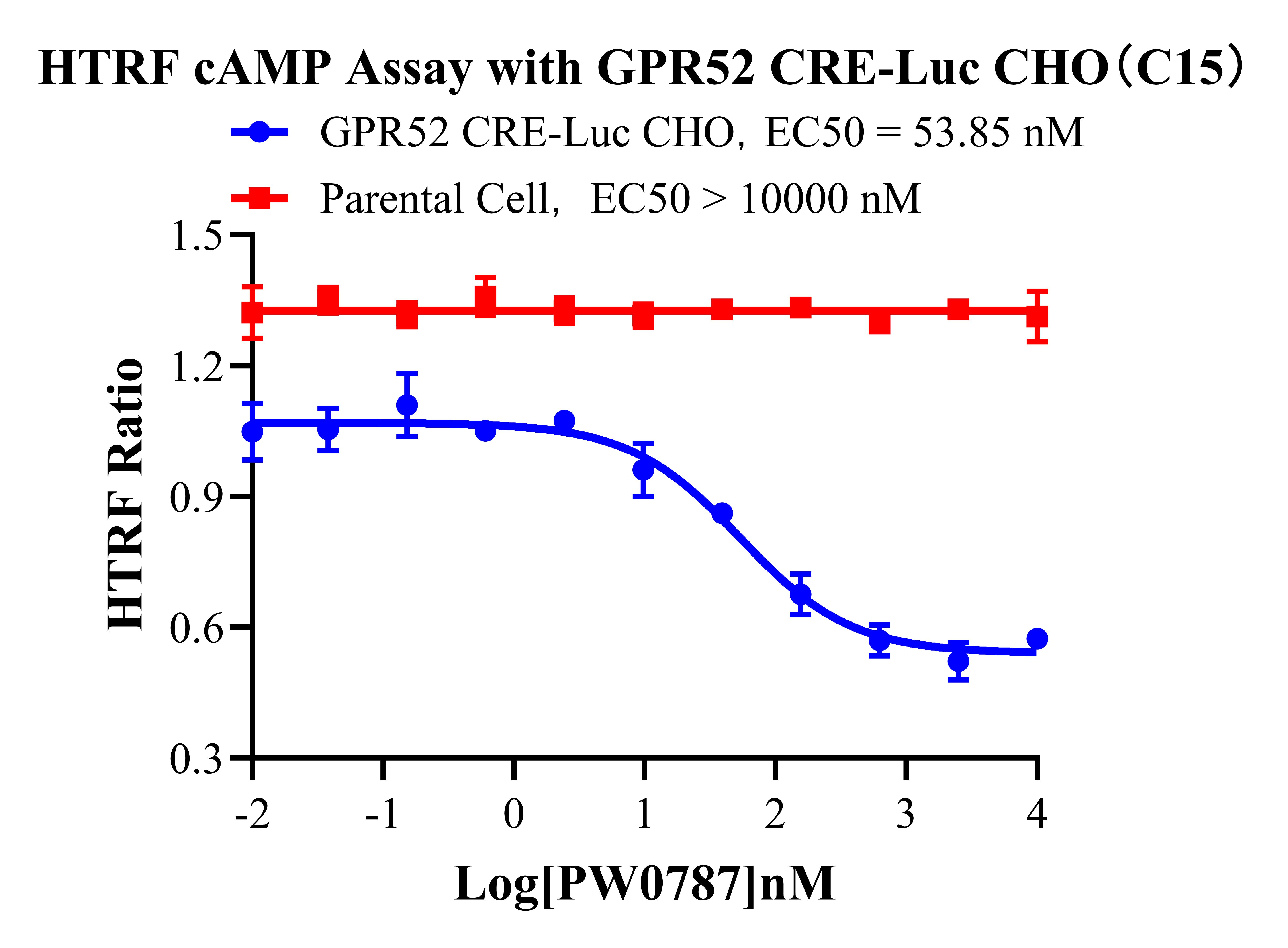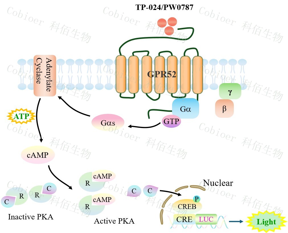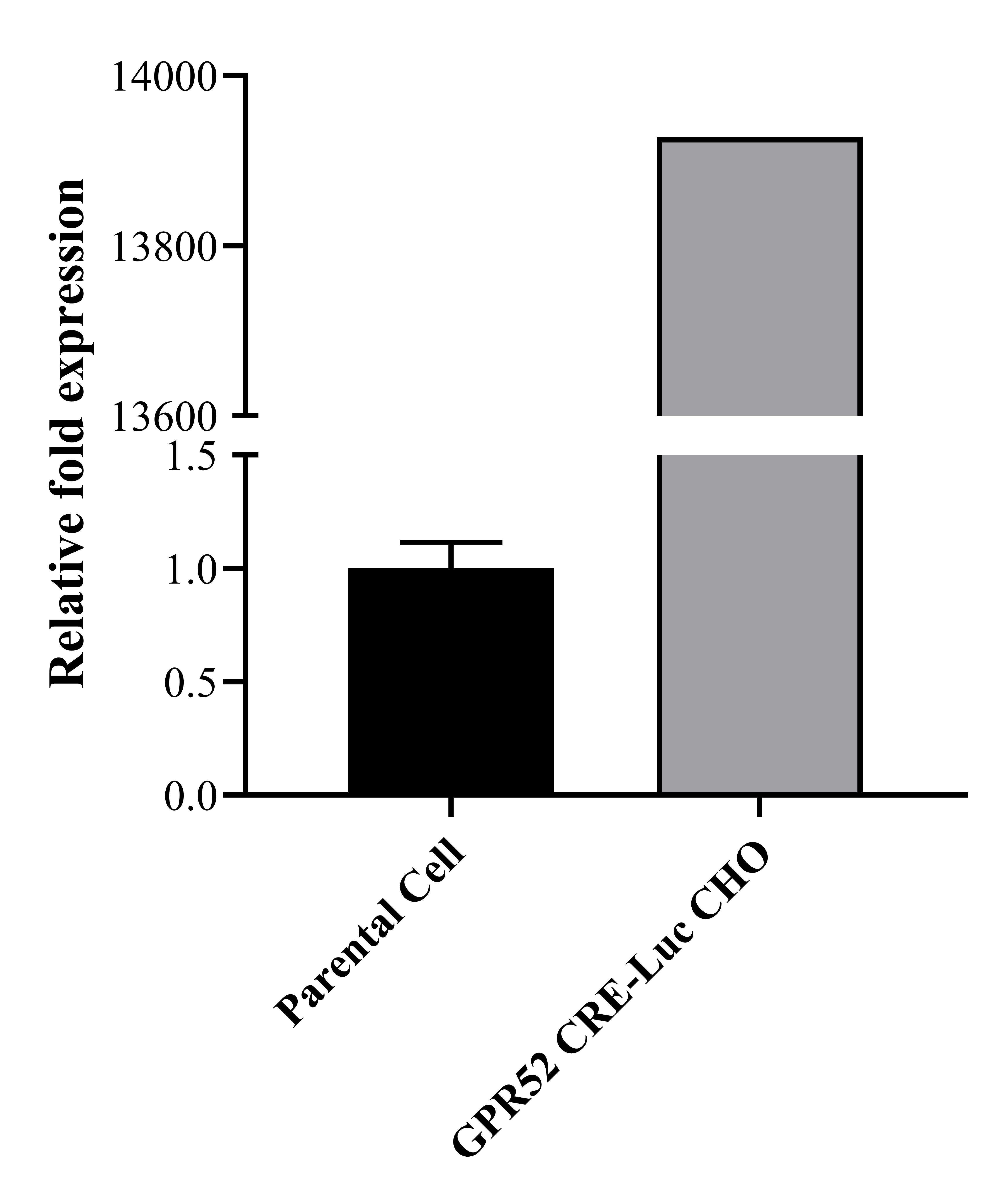 GPR52 CRE-Luc CHO 報(bào)告基因藥靶模型很好的模擬了體內(nèi) GPR52 的信號(hào)轉(zhuǎn)導(dǎo)過(guò)程, 原理見(jiàn)下圖所示。![]() Figure 1. GPR52 CRE-Luc CHO 細(xì)胞模型原理圖 |