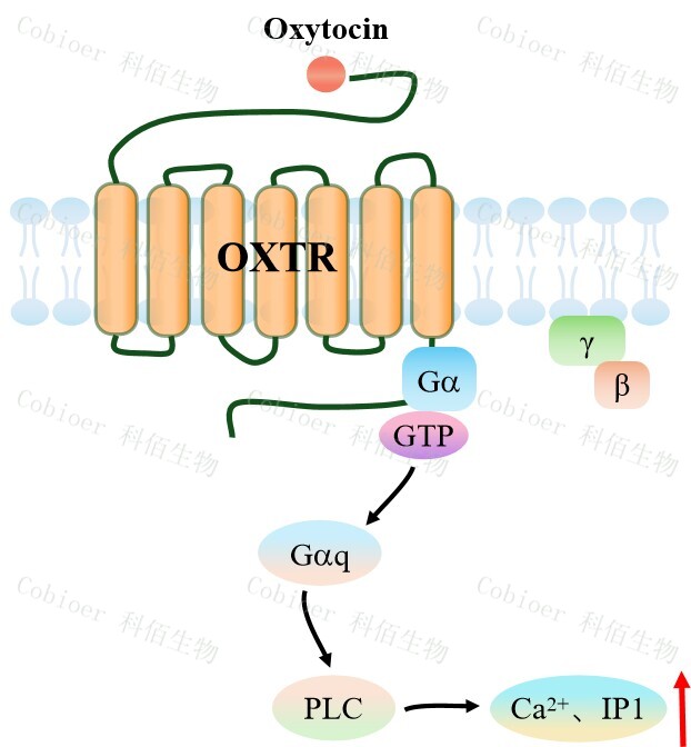 OXTR HEK293 細胞藥靶模型很好的模擬了體內(nèi) OXTR 的信號轉(zhuǎn)導過程,原理見圖下所示。