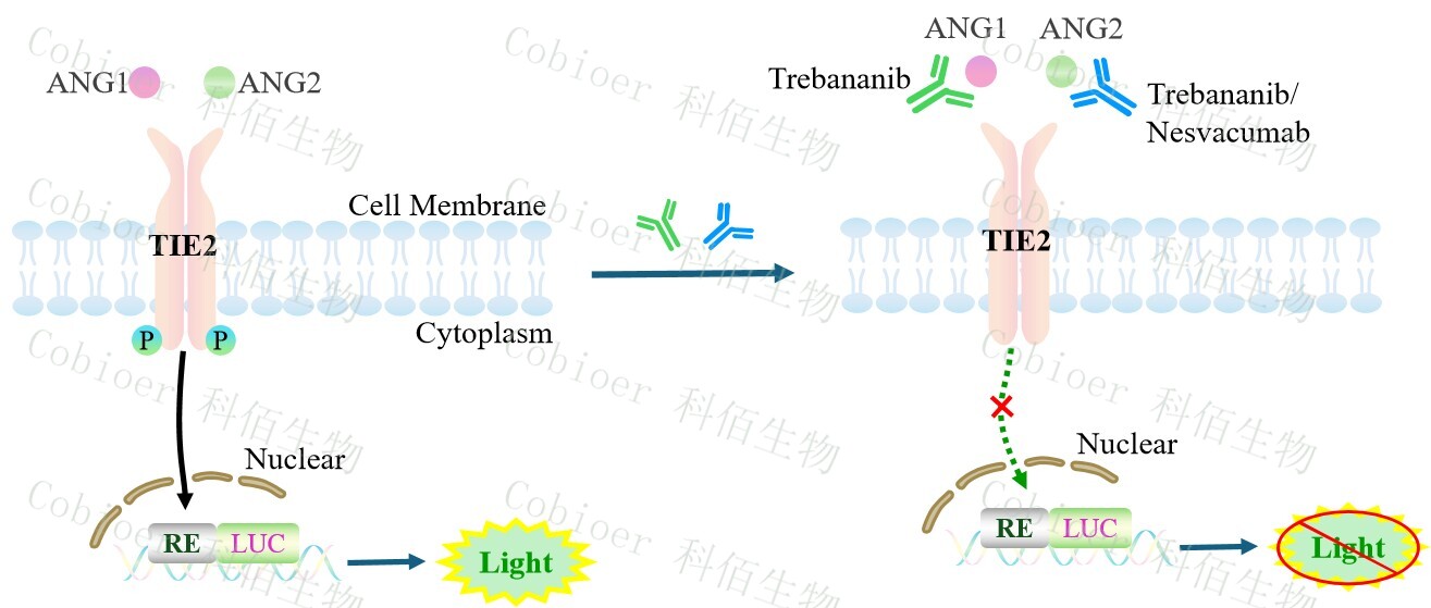 ANG/TIE2 Effector Reporter Cell 報告基因藥靶模型很好的模擬了體內(nèi) ANG/TIE2 的信 號轉(zhuǎn)導過程,原理見下圖所示。![]() Figure 1. ANG/TIE2 Effector Reporter Cell 細胞模型原理圖