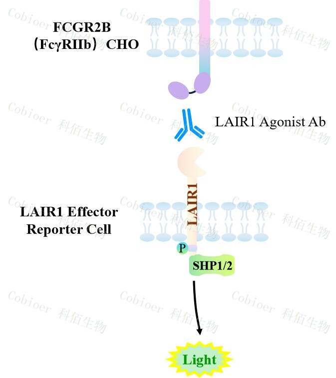 LAIR1 Effector Reporter Cell 報告基因藥靶模型很好的模擬了體內(nèi) LAIR1 的信號轉(zhuǎn)導過程,原理見下圖所示。![]() Figure 1.LAIR1 Effector Reporter Cell 細胞模型原理圖 |