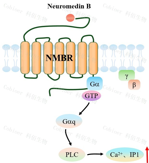 | 神經(jīng)介素 B 受體(NMBR)是一種廣泛分布于中樞神經(jīng)系統(tǒng)(如調(diào)控焦慮與攝食的下 丘腦、杏仁核)、外周組織(如肺、胃腸平滑?。┘岸喾N腫瘤(包括小細胞肺癌、膠質(zhì)瘤) 中的 G 蛋白偶聯(lián)受體(GPCR),其特異性結(jié)合配體神經(jīng)介素 B(NMB)或蛙皮素后,主 要激活 Gαq/11-PLCβ 信號級聯(lián),觸發(fā) IP3 介導的 Ga 2+釋放與 DAG-PKC 驅(qū)動的 ERK 磷酸化, 進而調(diào)控細胞增殖、炎癥因子釋放(如 TNF-α/IL-6)及平滑肌收縮;該受體在生理層面參 與攝食抑制(下丘腦 POMC 神經(jīng)元激活)與痛覺調(diào)節(jié)(增強阿片鎮(zhèn)痛),但病理狀態(tài)下通 過促進腫瘤增殖(如肺癌自分泌環(huán)激活 PI3K/AKT)、血管新生(膠質(zhì)瘤 VEGF 分泌)和 免疫微環(huán)境重塑(募集腫瘤相關(guān)巨噬細胞)驅(qū)動疾病進展,同時介導哮喘的氣道高反應性 與腸易激綜合征的胃腸動力紊亂,當前其治療價值聚焦于拮抗劑用于抗腫瘤、抗炎(緩解 支氣管痙攣)及激動劑治療中樞代謝性疾?。ㄈ绶逝郑_發(fā)兼具組織選擇性(外周拮 抗/中樞激動)與穩(wěn)定性的藥物仍是核心挑戰(zhàn)。 | |