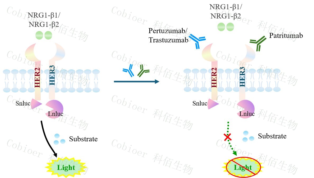 ERBB2&ERBB3 Dimerization CHO 報告基因藥靶模型很好的模擬了體內(nèi) ERBB2&ERBB3 的信號轉(zhuǎn)導(dǎo)過程,原理見圖所示。![]() Figure 1. ERBB2&ERBB3 Dimerization CHO 細胞模型原理圖 |