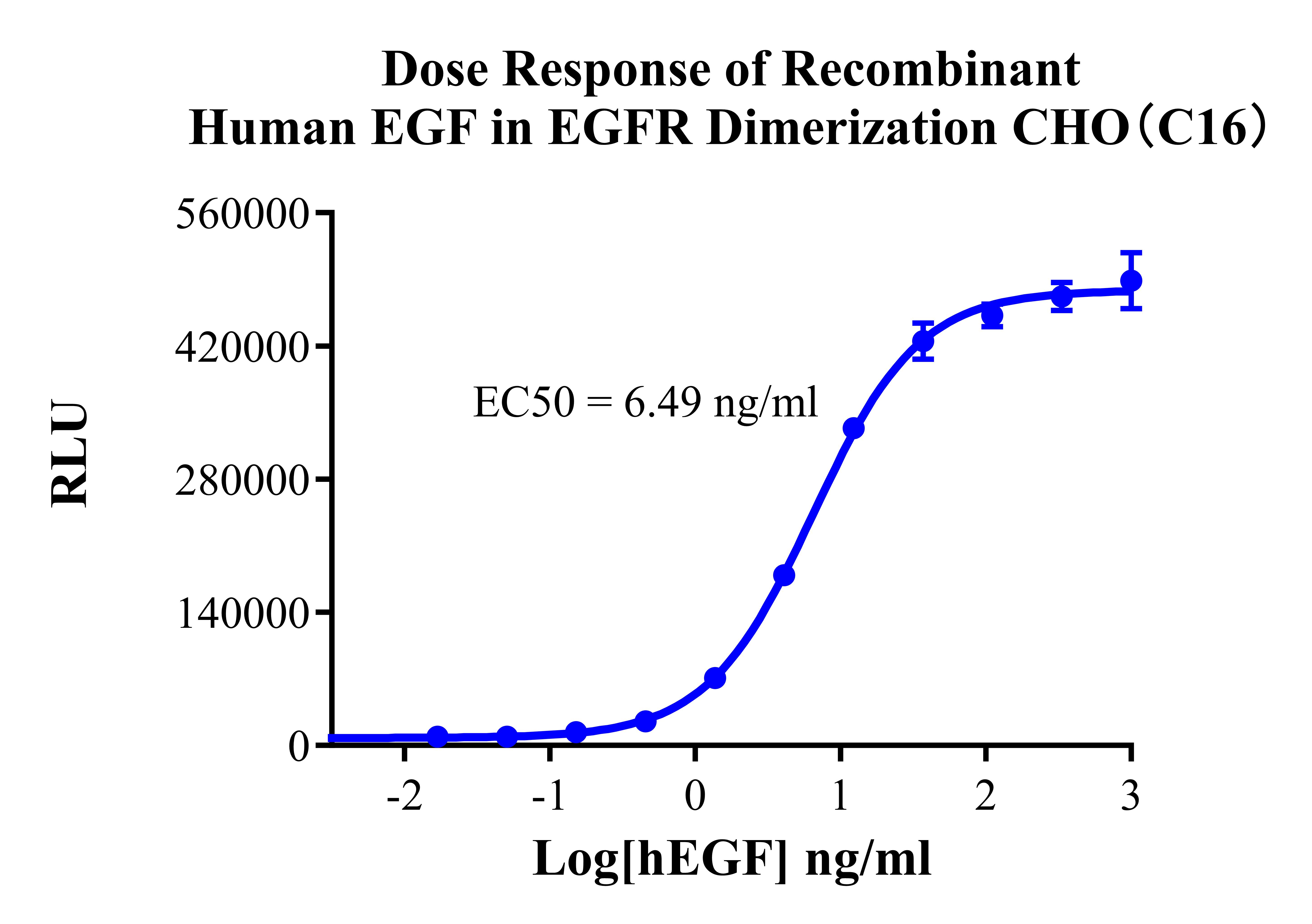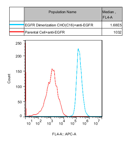 ![]() Figure 2. Recombinant EGFR Dimerization CHO stably expressing EGFR. ![]() Figure 3. Dose Response of Recombiant Human EGF in EGFR Dimerization CHO(C16).