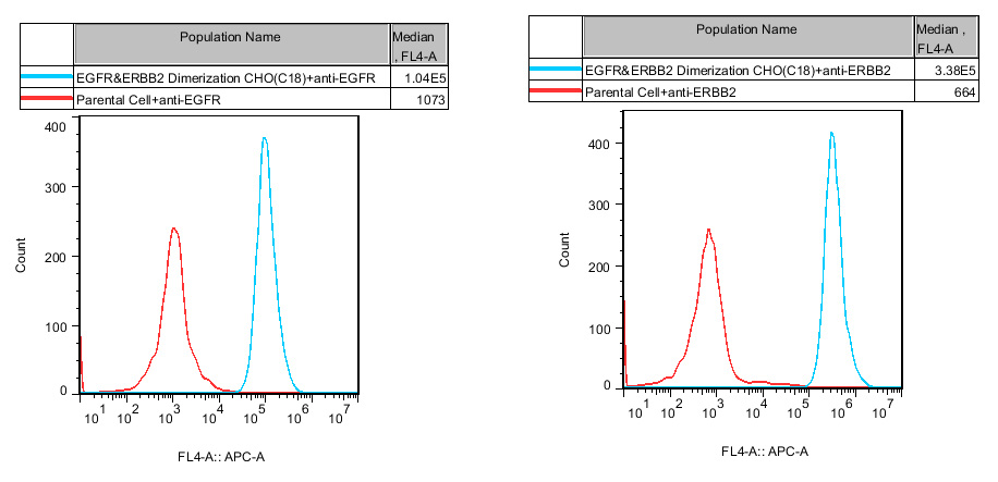 ![]() Figure 4. Inhibition of Recombinant Human EGF induced EGFR&ERBB2 Dimerization by EGFR or ERBB2 Abs in EGFR&ERBB2 Dimerization CHO (C18). |