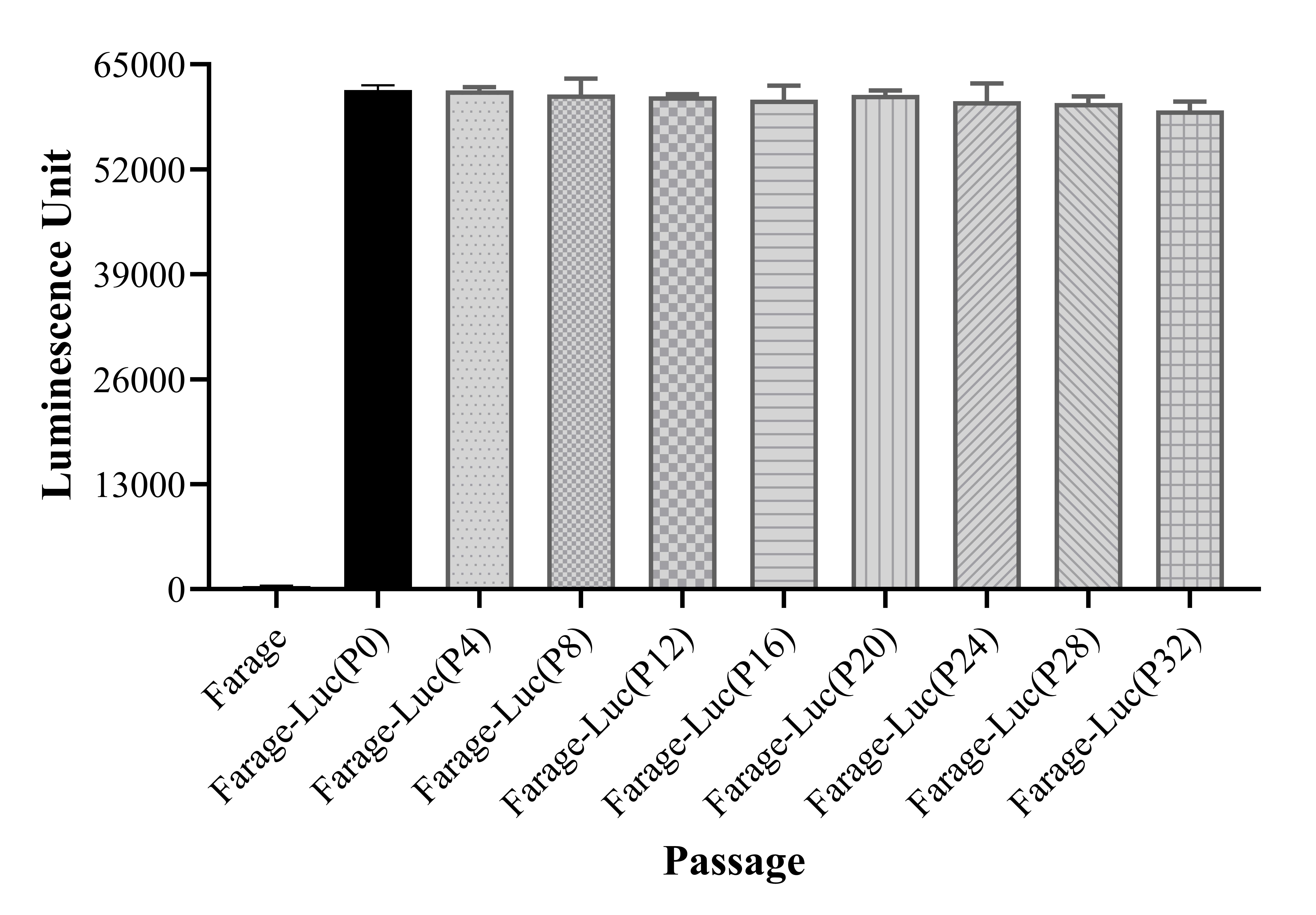 Figure 1. Stablity test results. Farage-Luc showed at least 32 passage stability with similar luminescence unit.