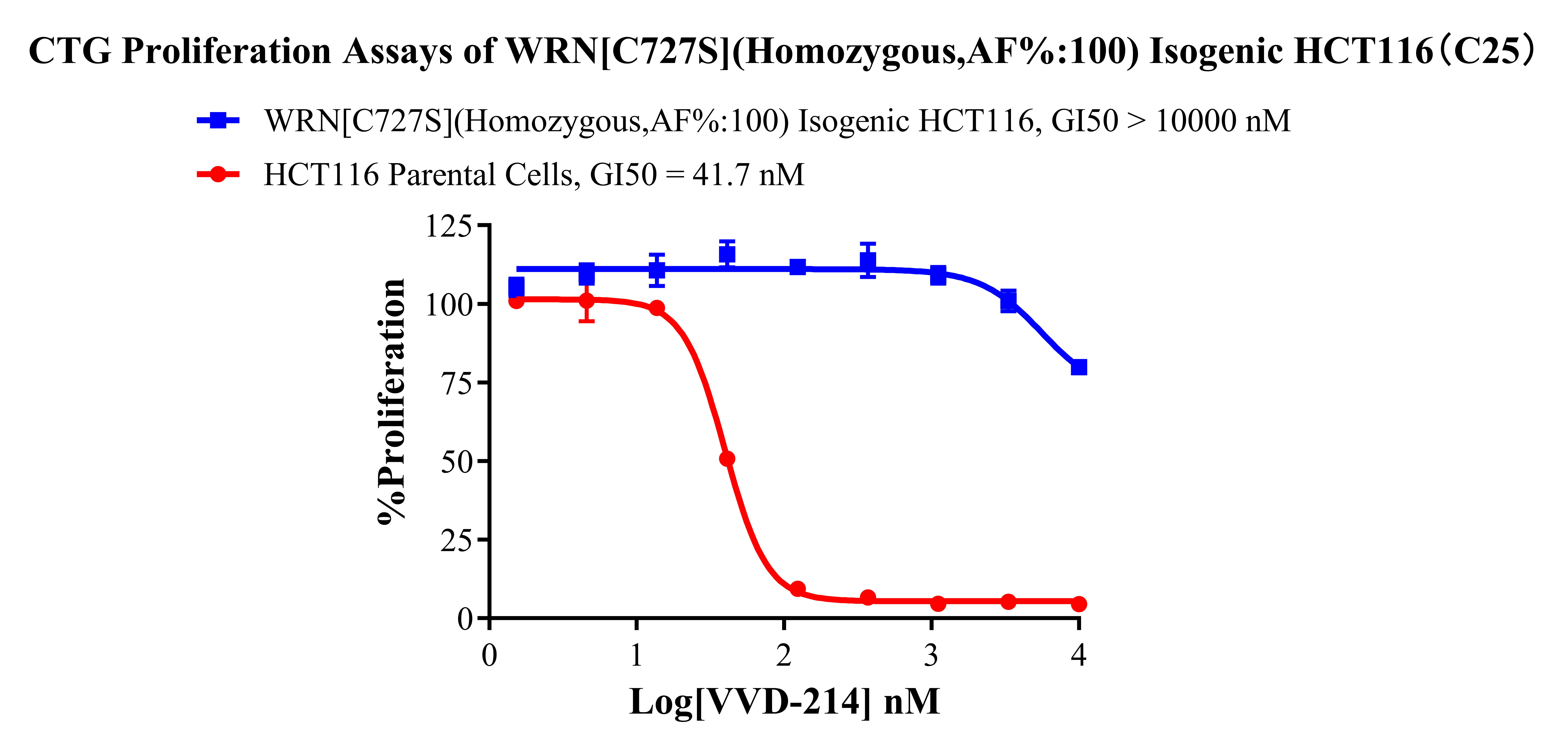 WRN[C727S](Homozygous,AF%:100) Isogenic HCT116 藥靶細(xì)胞,通過基因編輯的方式將 WRN 的 727 位氨基酸胱氨酸(C)突變?yōu)榻z氨酸(S)。![]() Figure 1. WRN[C727S](Homozygous,AF%:100) Isogenic HCT116 原理示意圖 |