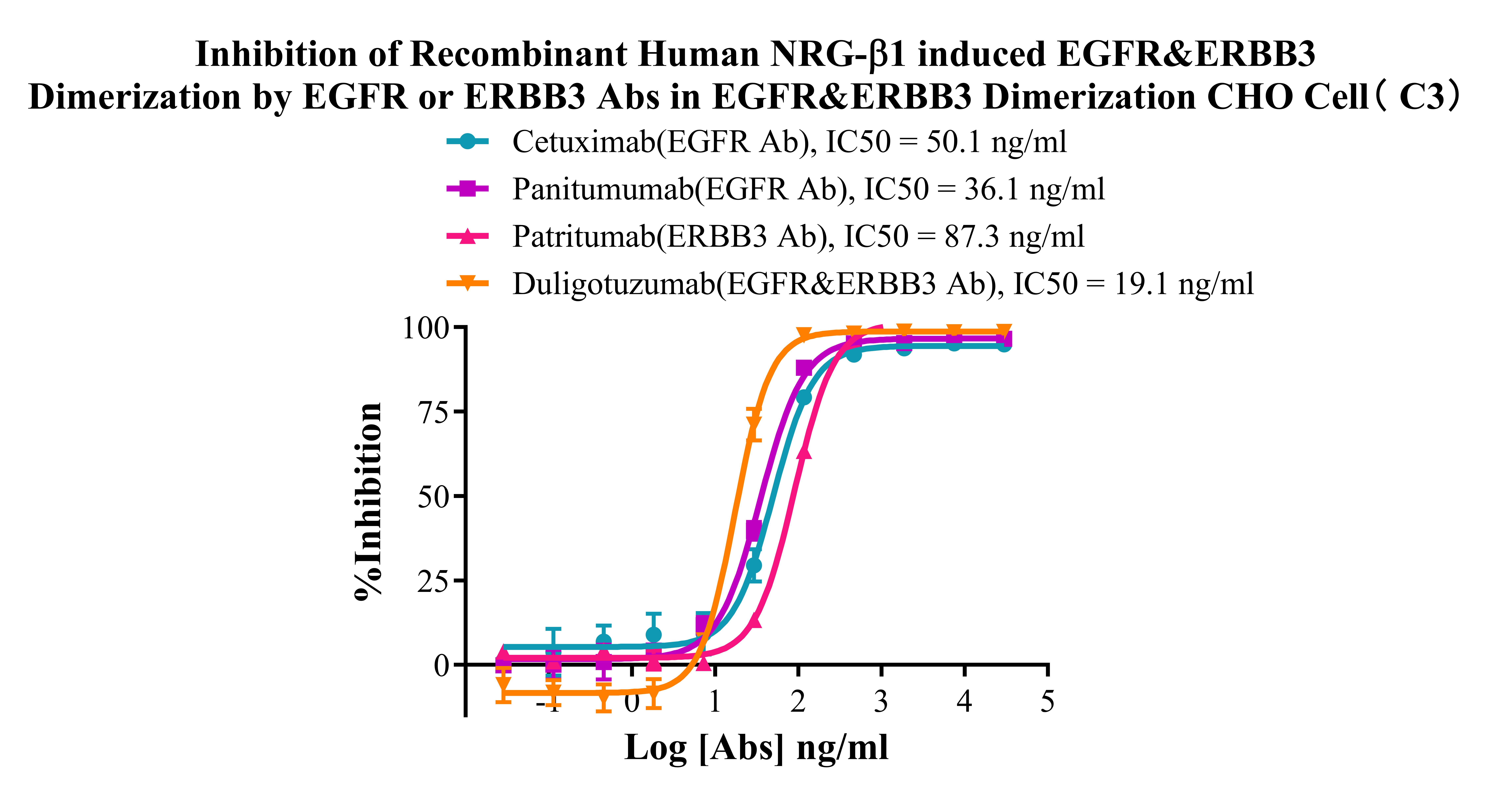 ![]() Figure 4. Inhibition of Recombinant Human NRG-β1 induced EGFR&ERBB3 Dimerization by EGFR or ERBB3 Abs in EGFR&ERBB3 Dimerization CHO Cell(C3). ![]() |