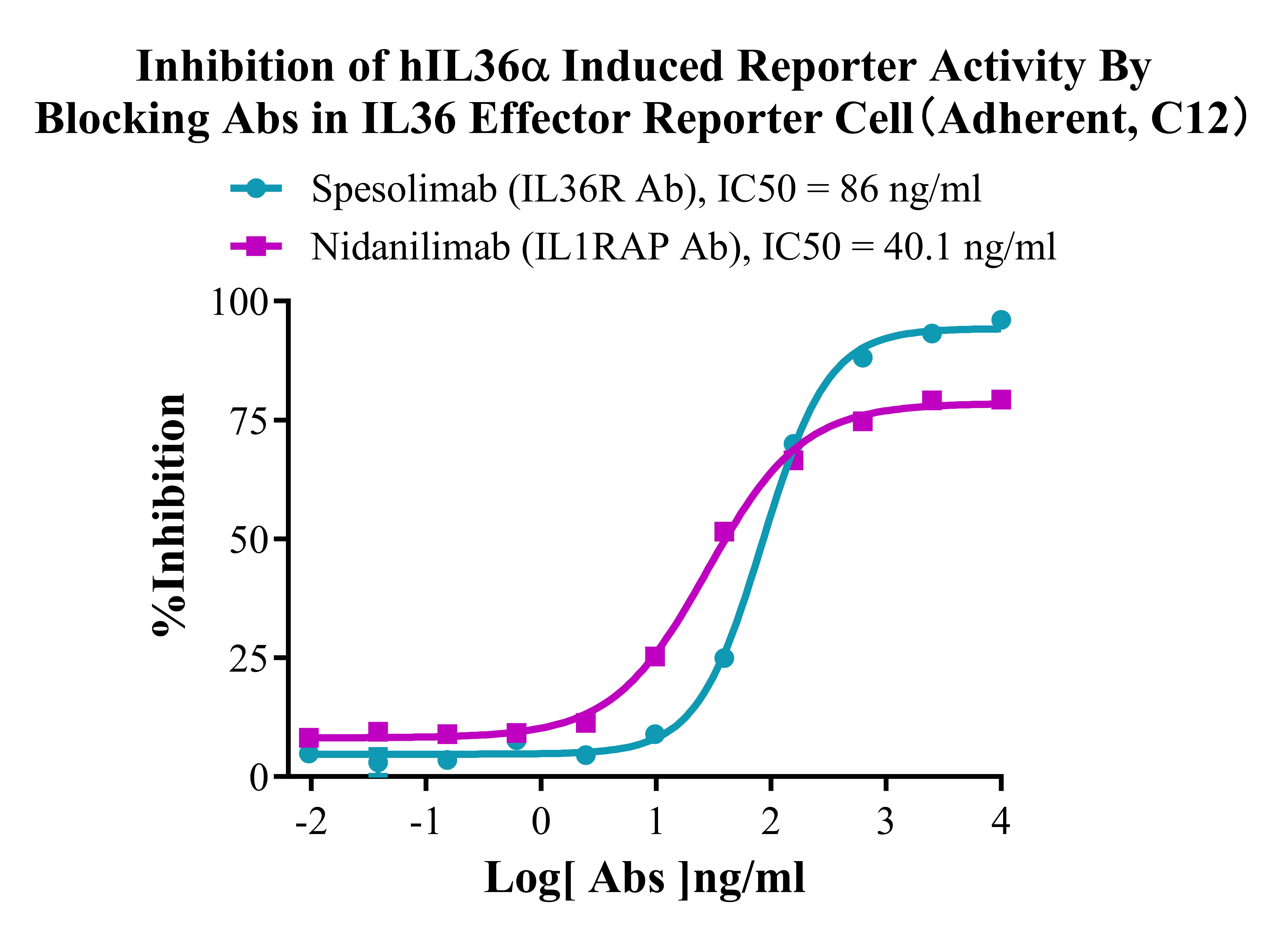 ![]() Figure 1. Recombinant IL36 Effector Reporter Cell(Adherent) stably expressing IL36R. ![]() Figure 2. Dose Response of Recombinant Human IL36 alpha Protein in IL36 Effector Reporter Cell(Adherent, C12). ![]() Figure 3. Inhibition of hIL36α Induced Reporter Activity By Blocking Abs in IL36 Effector Reporter Cell(Adherent, C12). |