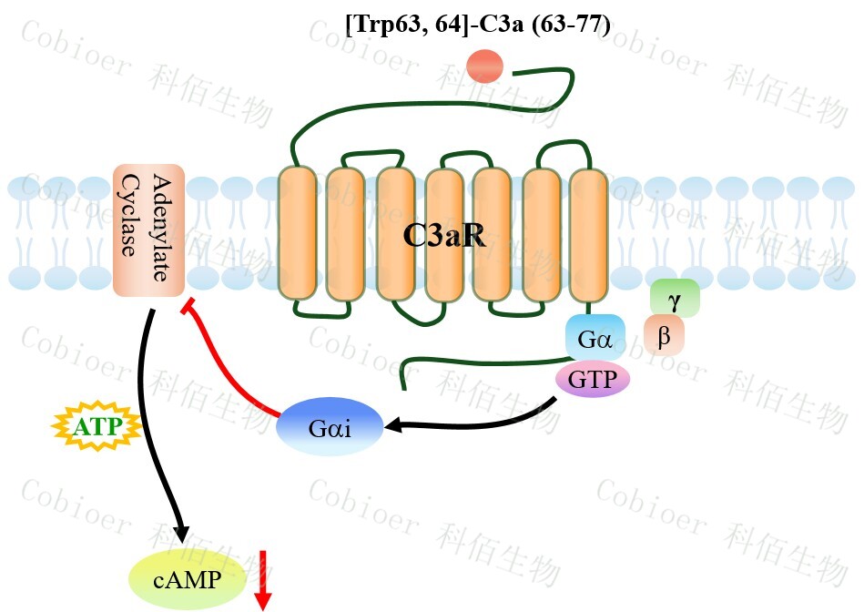 | 補體過敏毒素 C3a 是補體系統(tǒng)激活(經(jīng)典、凝集素或旁路途徑)過程中,由 C3 轉(zhuǎn)化 酶裂解 C3 蛋白α鏈釋放的小分子多肽(77 個氨基酸,分子量 9 kDa)。作為補體級聯(lián)的核 心炎癥介質(zhì),C3a 在血漿中以前體形式(無活性) 存在,經(jīng)羧肽酶 N 切除 C 端精氨酸后轉(zhuǎn) 化為活性形式 C3a-desArg(失去受體結(jié)合能力但保留部分免疫調(diào)節(jié)功能)。 C3aR 是 C3a 的唯一高親和力受體,屬于 G 蛋白偶聯(lián)受體(GPCR)B 家族,具有獨特 的 7 次跨膜結(jié)構(gòu)及超長胞外第二環(huán)(ECL2),介導配體特異性識別。C3aR 被配體 C3a 激 活后,通過 Gi/Gq 蛋白雙耦聯(lián)觸發(fā)下游信號。Gi 通路抑制 cAMP 生成并激活 PI3K-Akt 促 細胞存活與遷移;Gq 通路則激活 PLCβ—IP3/DAG/PKC—NF-κB 級聯(lián),介導鈣動員與炎癥 基因轉(zhuǎn)錄。其反應呈現(xiàn)雙效性:低濃度時促進組織修復、免疫調(diào)節(jié);高濃度時驅(qū)動過敏反 應、神經(jīng)炎癥及腫瘤免疫抑制,且病理效應與濃度和組織微環(huán)境密切相關(guān)。 |