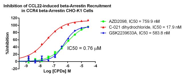 Figure 3. Inhibition of CCL22-induced beta-Arrestin Recruitment in CCR4 beta-Arrestin CHO-K1 Cells.
