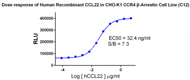 Figure 2. Dose response of Human Recombinant CCL22 in CHO-K1 CCR4 β-Arrestin Cell Line (C12).