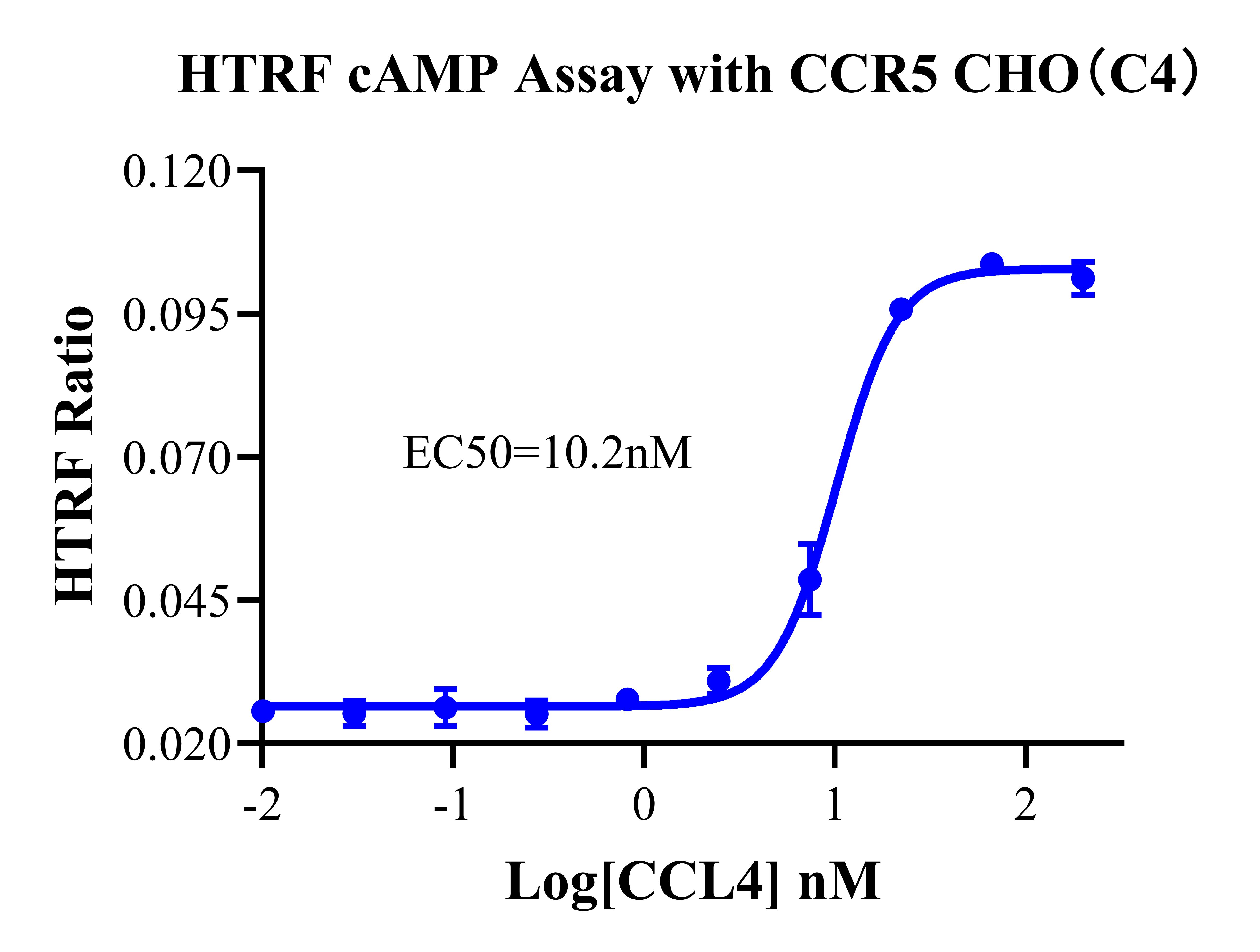 cAMP 在 G 蛋白偶聯(lián)受體(GPCR)信號轉(zhuǎn)導(dǎo)中是一種關(guān)鍵的第二信使。當(dāng)配體結(jié)合到 GPCR,構(gòu)象發(fā)生變化,激活受體接著激活G蛋白,Gi的激活導(dǎo)致腺苷酸環(huán)化酶調(diào)控 cAMP 的下調(diào)。CCR5 藥靶模型很好的模擬了體內(nèi) CCR5 的信號轉(zhuǎn)導(dǎo)過程,原理見下圖所示。![]() Figure 1. CCR5 CHO 細(xì)胞模型原理圖