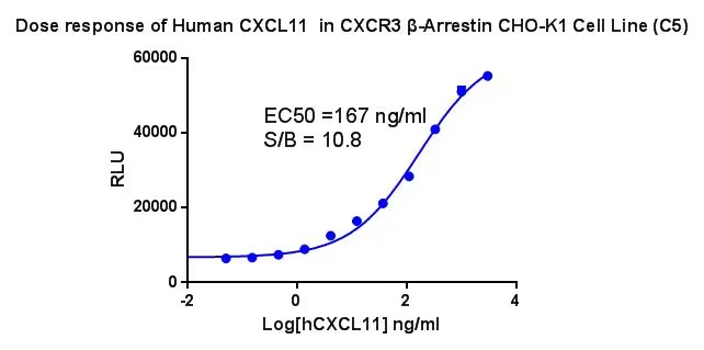 Figure 2.Dose response of Human CXCL11 in CXCR3 β-Arrestin CHO-K1 Cell Line (C5). |