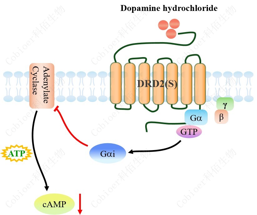 | 多巴胺(DA)是一種主要的兒茶酚胺神經(jīng)遞質(zhì),它與多巴胺受體(DRs)結(jié)合,因此 在中樞神經(jīng)系統(tǒng)(CNS)中起著重要作用,包括睡眠、工作記憶、情緒、學習等。DRs 是 由 DRD1、DRD2、DRD3、DRD4 和 DRD5 組成的 G 蛋白偶聯(lián)受體,根據(jù)它們對腺苷酸環(huán) 化酶(AC)活性的不同調(diào)節(jié)作用,分為 D1 樣受體(DRD1 和 DRD5)和 D2 樣受體 (DRD2、DRD3 和 DRD4)。D2 樣受體與 Go 和 Gi 蛋白偶聯(lián),它們參與 AC 的失活,導(dǎo) 致胞質(zhì)內(nèi) cAMP 水平降低。DA 與 D2 樣受體的結(jié)合抑制 cAMP/PKA 信號通路,最終影響 CREB 磷酸化。DRD2 基因有兩種剪接體,可產(chǎn)生不同長度(氨基酸數(shù))的受體,稱為 DRD2L 和 DRD2S。 | |