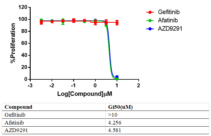 Figure 3. Anti-proliferation assay of three reference compounds on the EGFR L858R-T790M-C797S/BaF3 Stable Cell Line. |