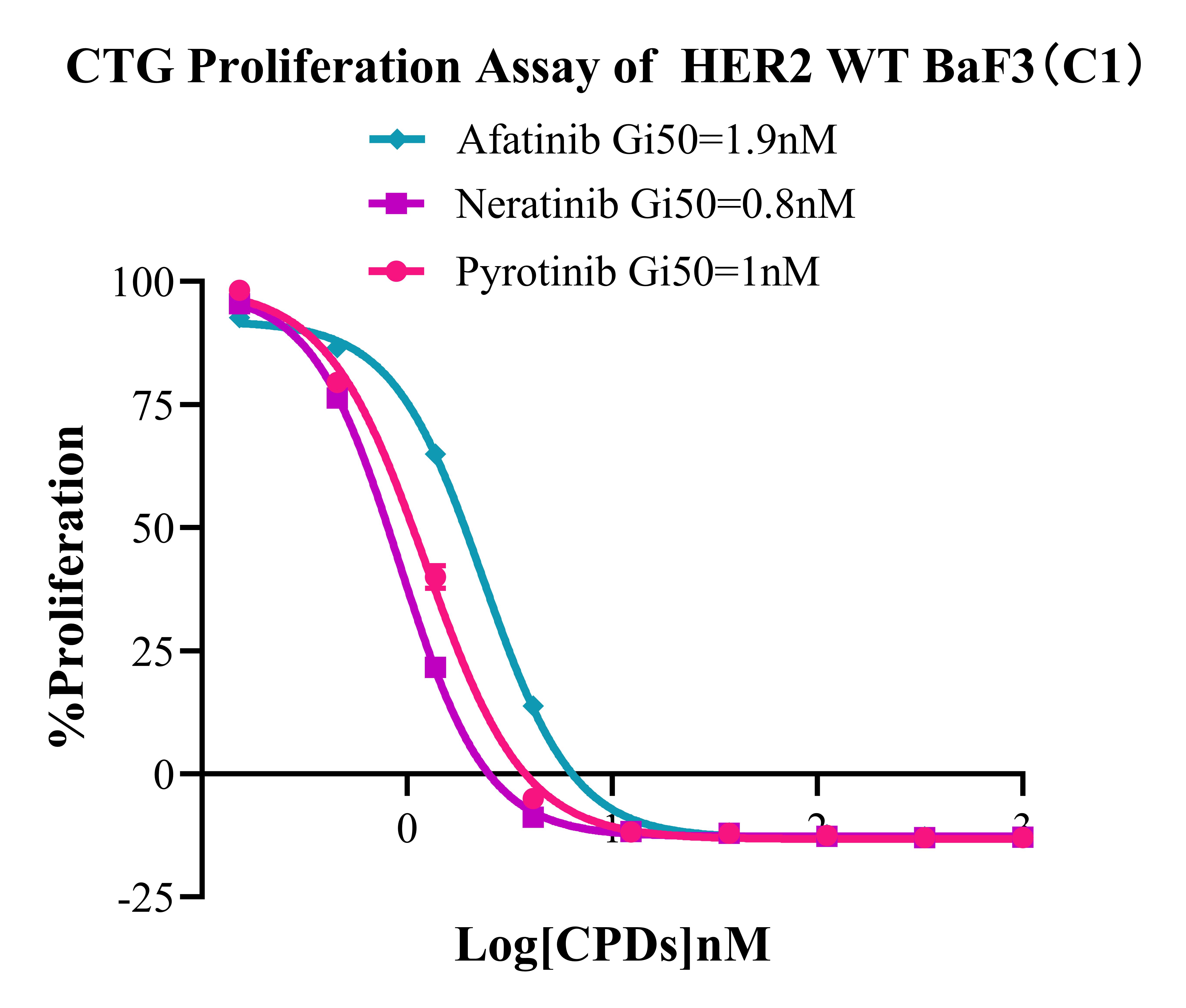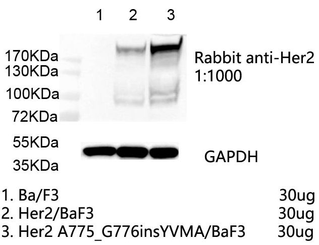 HER2 WT BaF3 藥靶細胞,通過轉導 Her2 基因到 BaF3 細胞系中,穩(wěn)定 表達人突變形態(tài)下的 Her2 WT 基因。