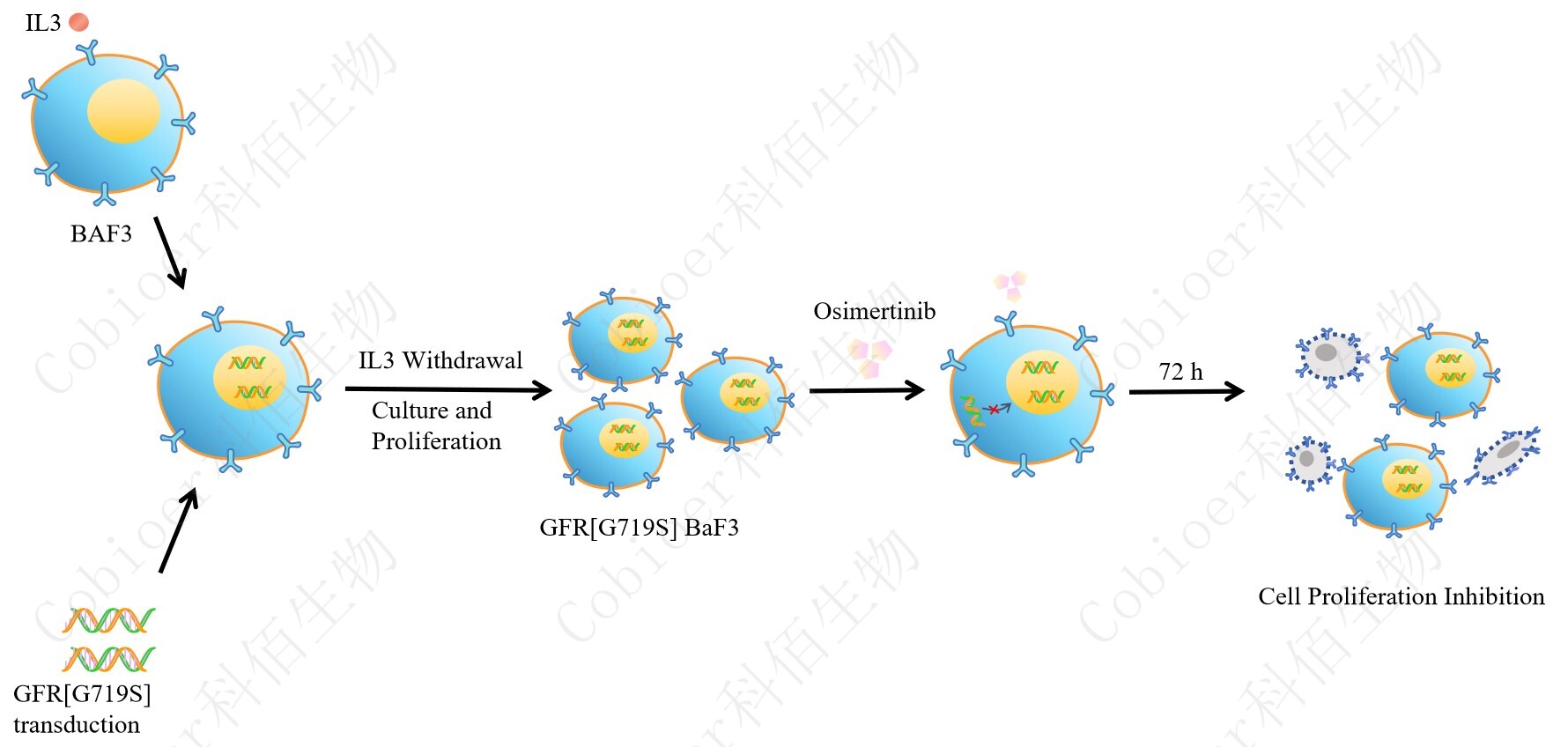 BaF3(小鼠原 B 細(xì)胞)的生長和增殖需要 IL-3 的維持。通過引入各種表達(dá)激酶的基因, 能作為 BaF3 的驅(qū)動(dòng)基因,讓 BaF3 不再依賴 IL-3 而增殖,進(jìn)而激酶基因成為 BaF3 增殖依 賴的驅(qū)動(dòng)基因,用于評估小分子藥物對激酶的靶向抑制作用,原理及流程見下圖所示。