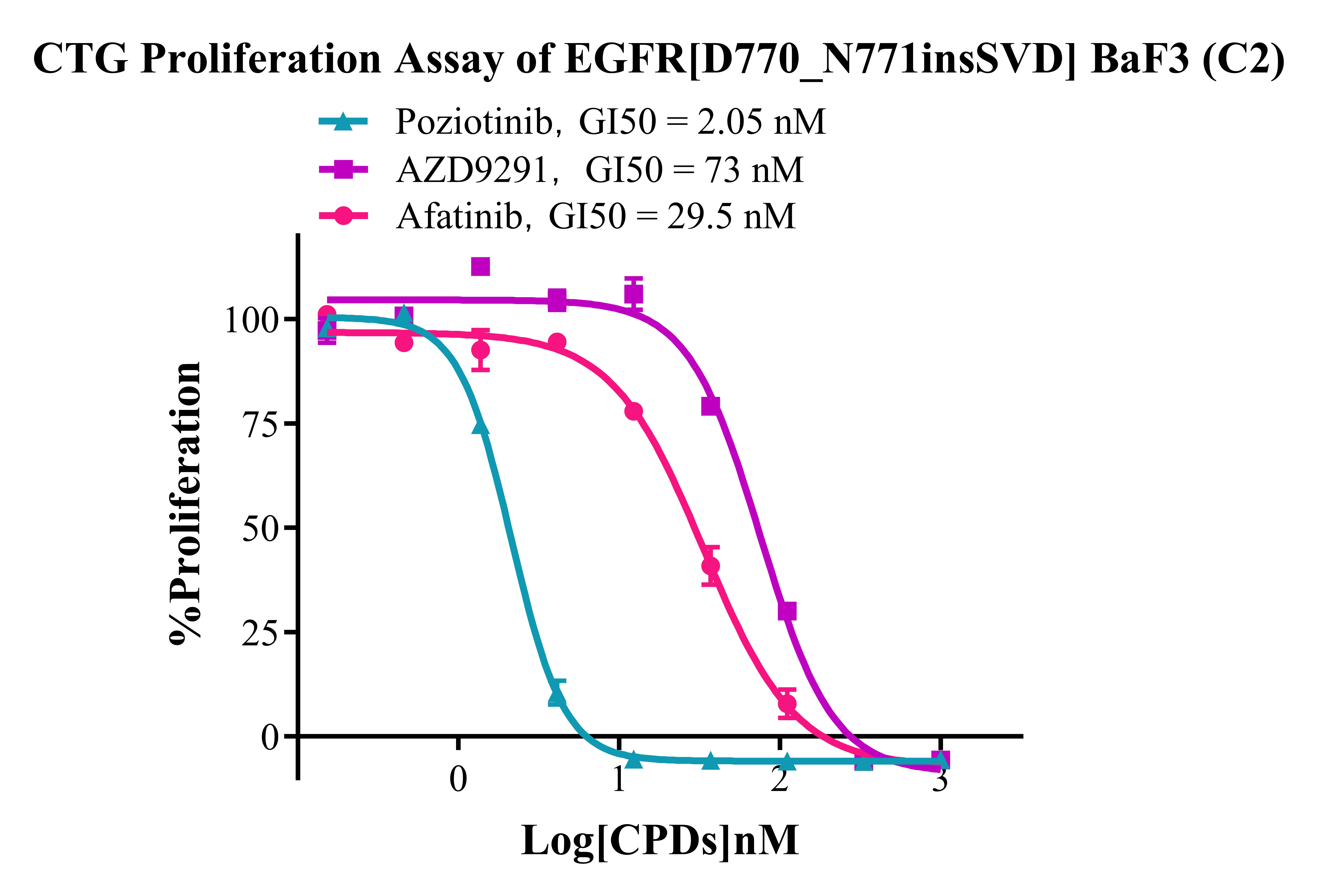 Figure 4. CTG Proliferation Assay of EGFR [D770_N771insSVD] BaF3(C2). |
