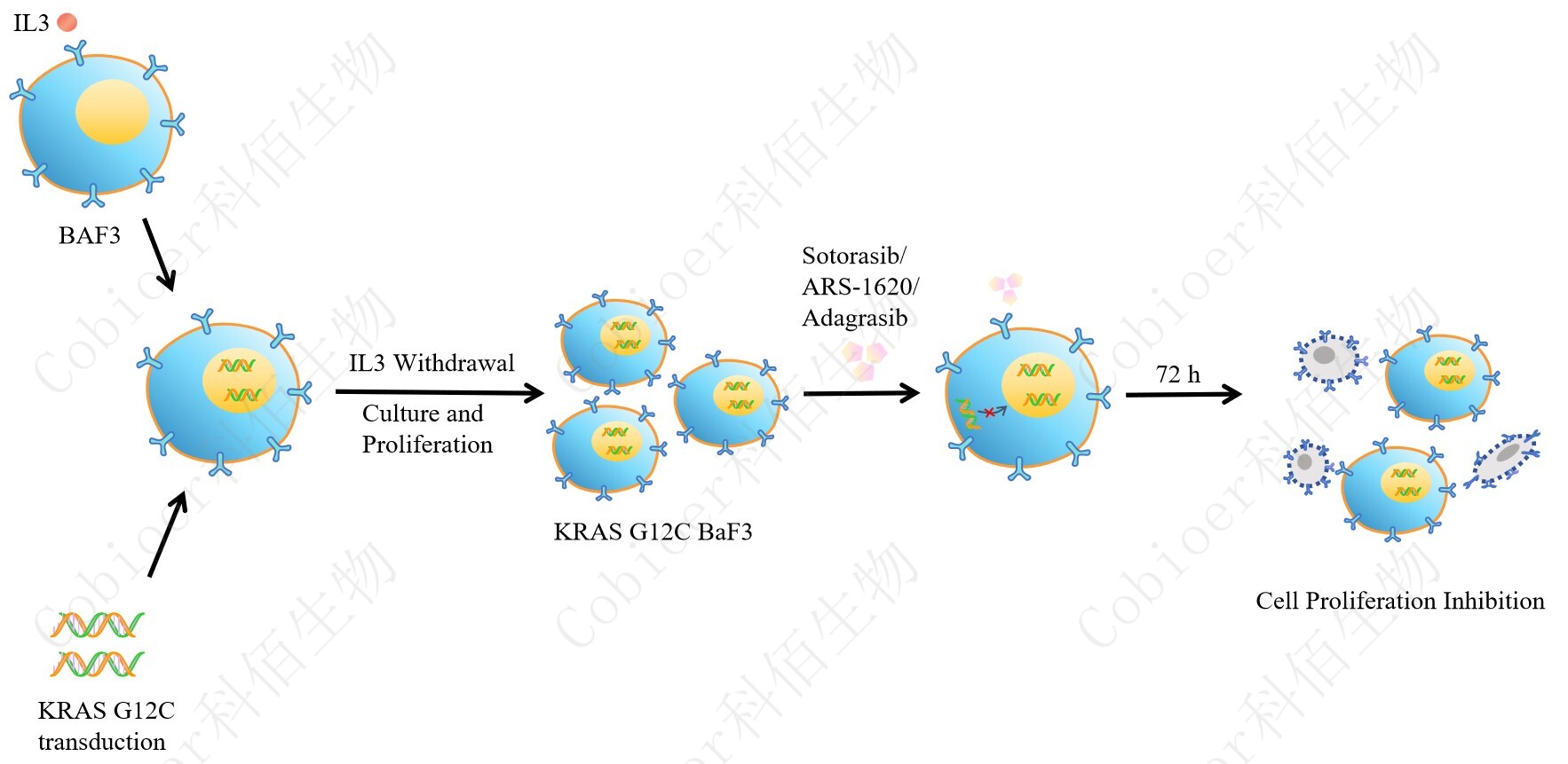 BaF3(小鼠原 B 細(xì)胞)的生長和增殖需要 IL-3 的維持。通過引入各種表達(dá)激酶的基因, 能作為 BaF3 的驅(qū)動基因,讓 BaF3 不再依賴 IL-3 而增殖,進(jìn)而激酶基因成為 BaF3 增殖依賴的驅(qū)動基因,用于評估小分子藥物對激酶的靶向抑制作用,原理及流程見下圖所示。