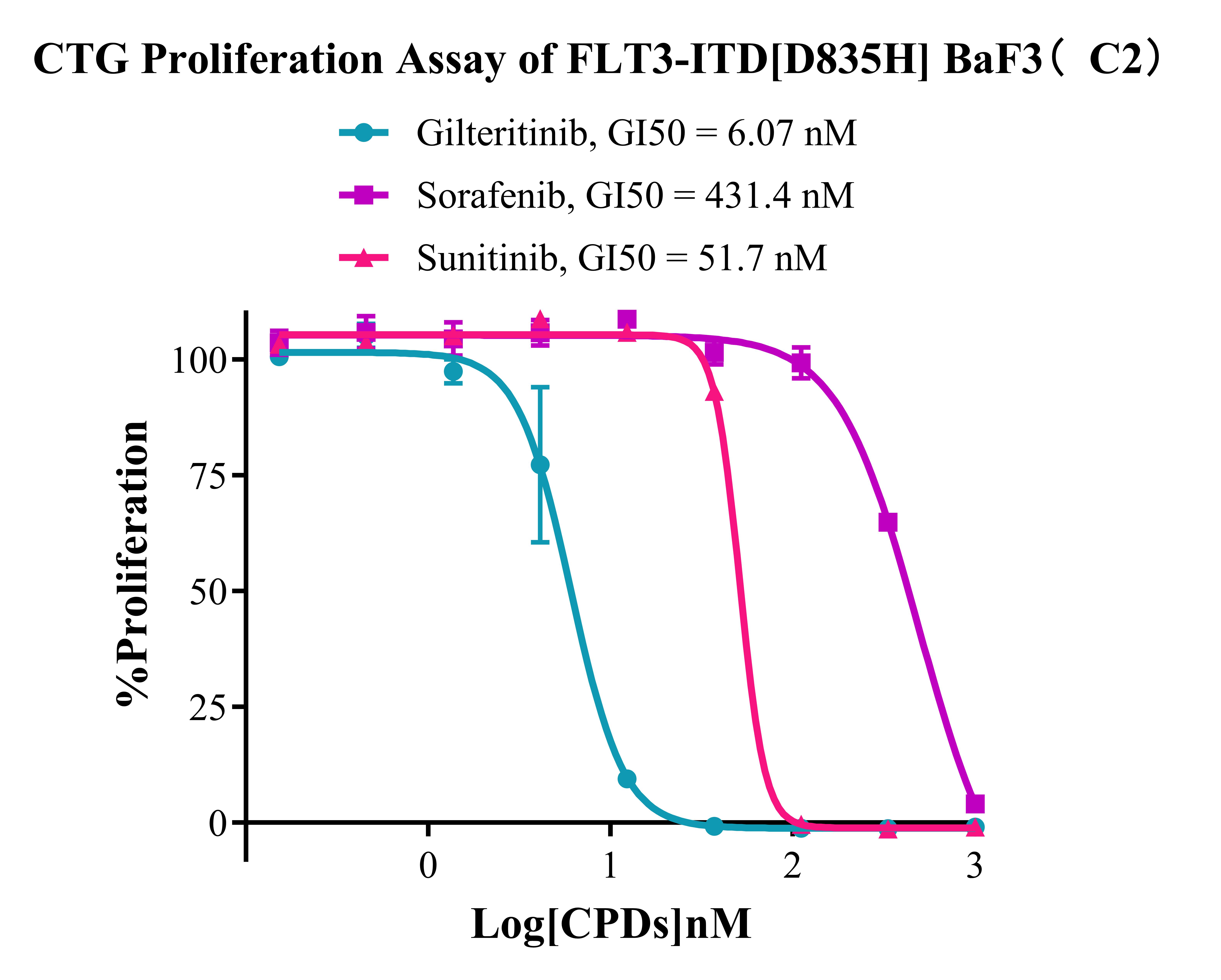 Figure 3. CTG Proliferation Assay of FLT3-ITD [D835H] BaF3(C2). |