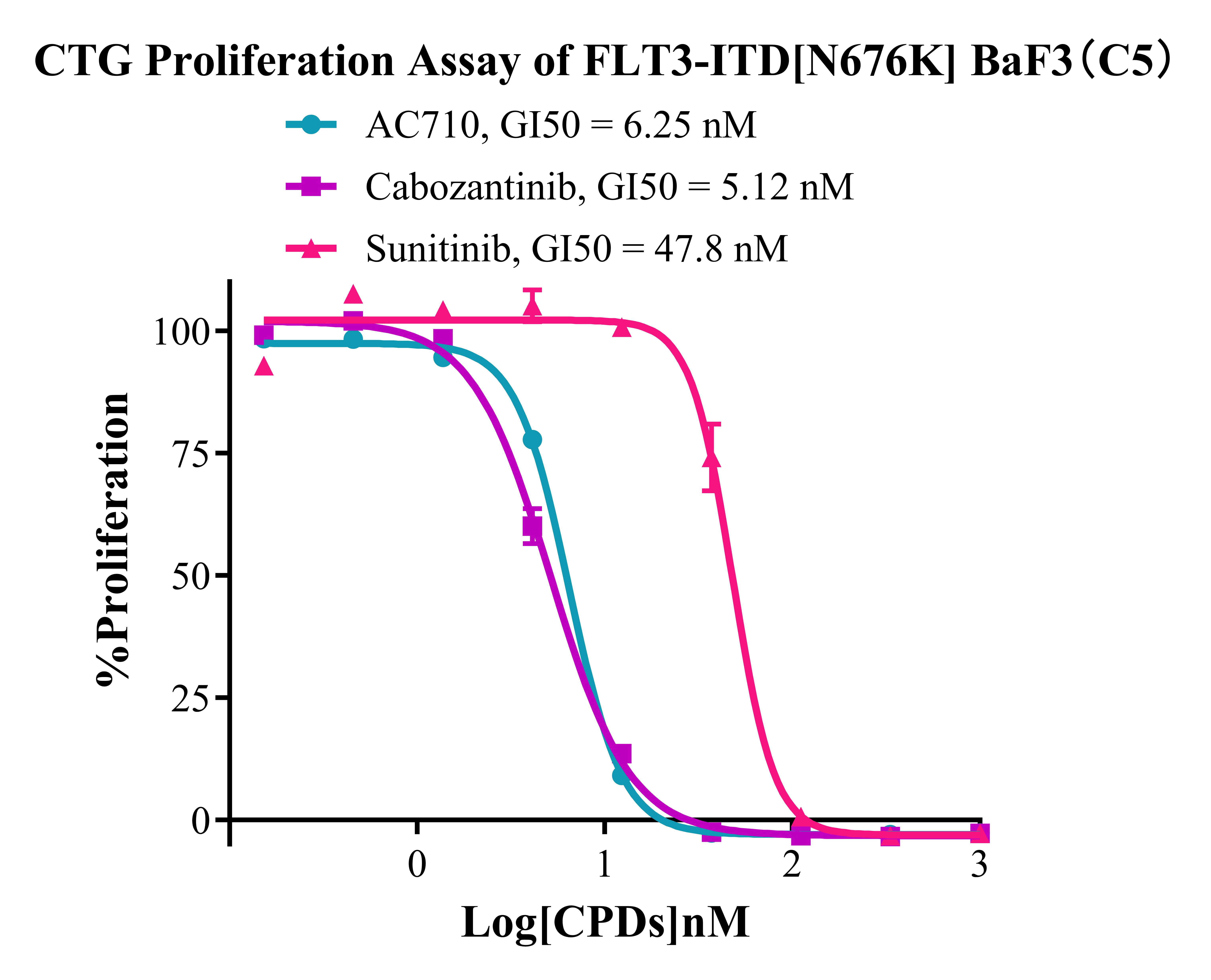 Figure 4. CTG Proliferation Assay of FLT3-ITD [N676K] BaF3(C5). |