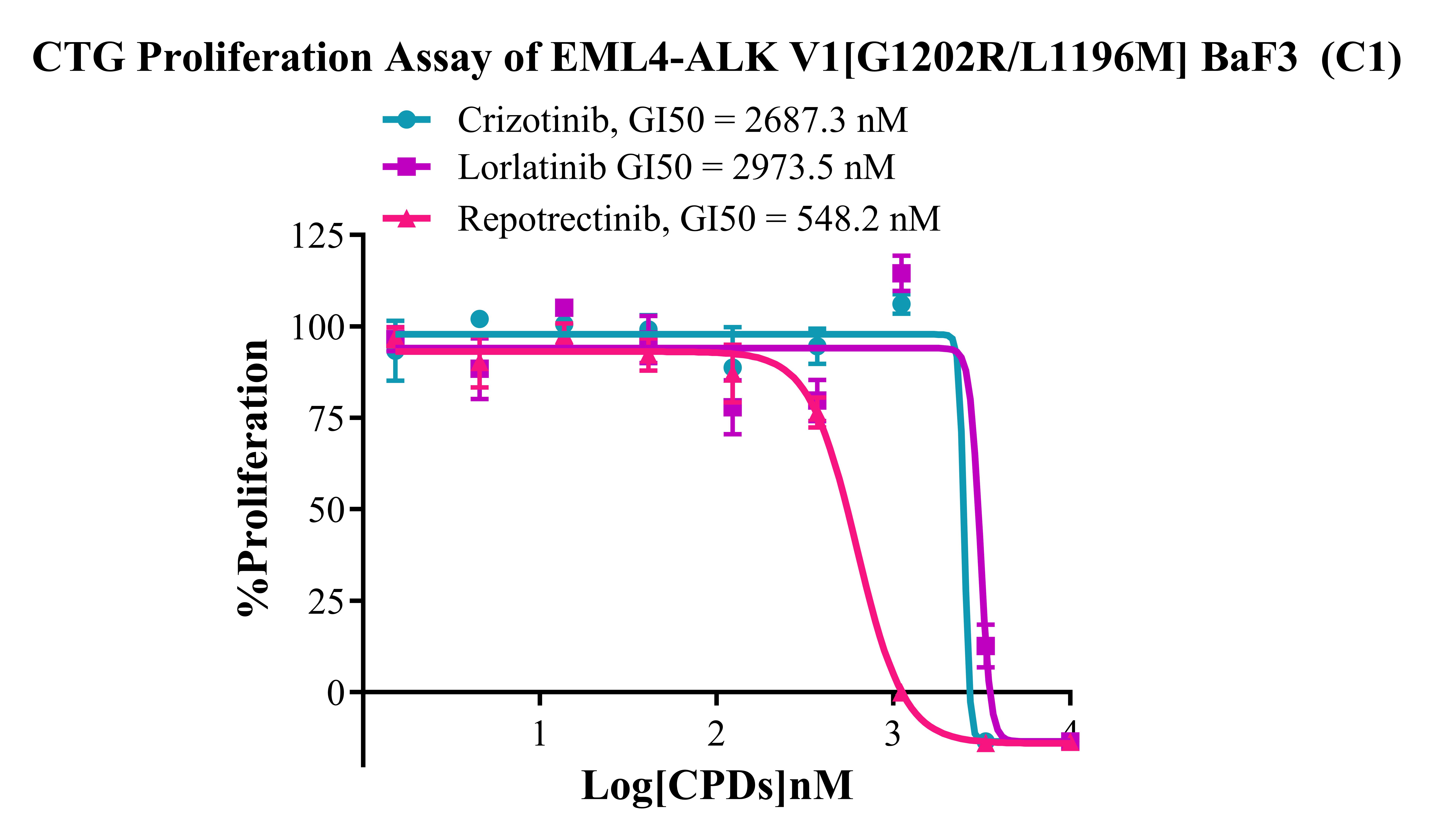 Figure 5 . CTG Proliferation Assay of EML4-ALK V1 [G1202R/L1196M] BaF3 (C1). |