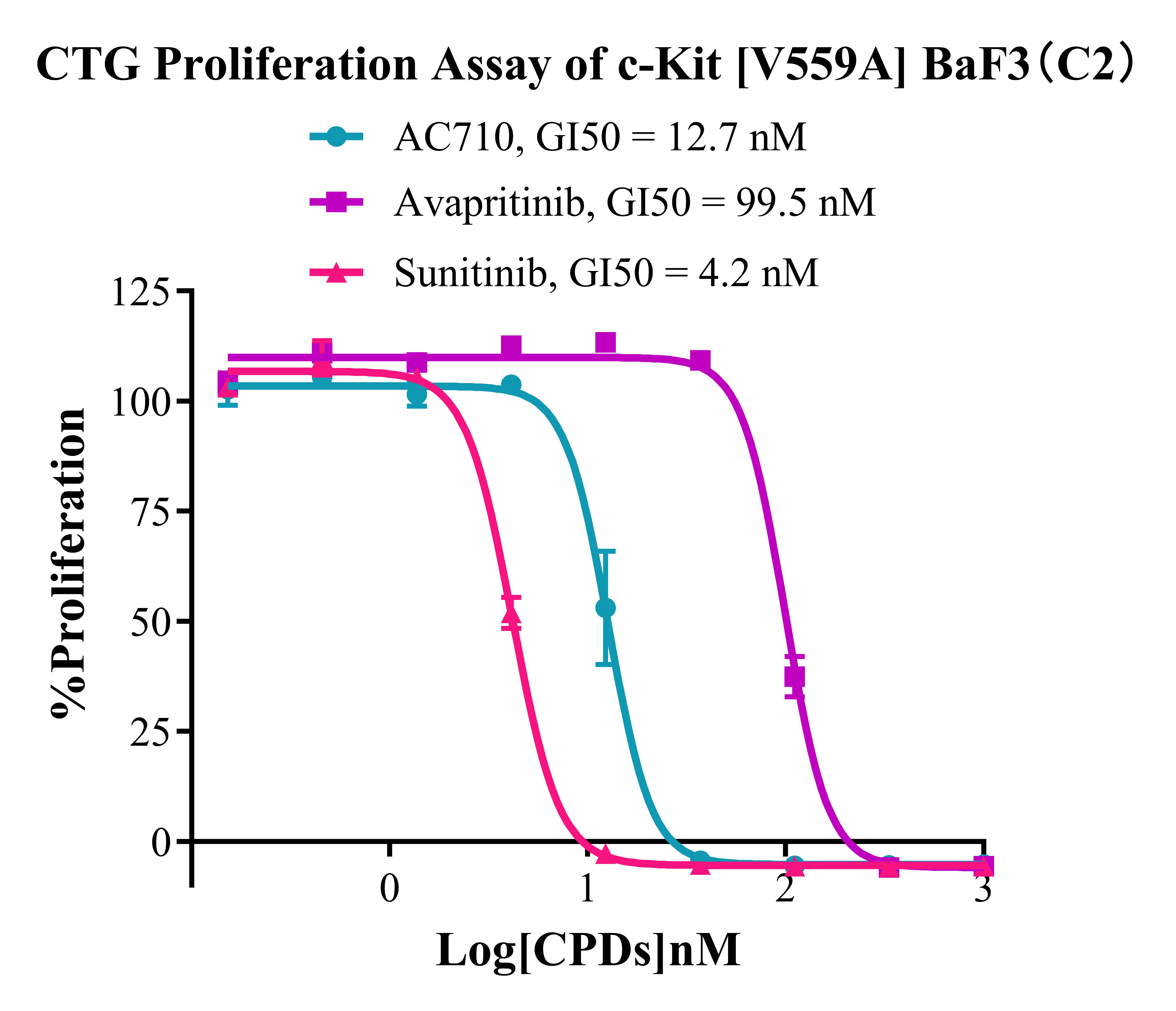 Figure 3. CTG Proliferation Assay of c-kit [V559A] BaF3 (C2). |