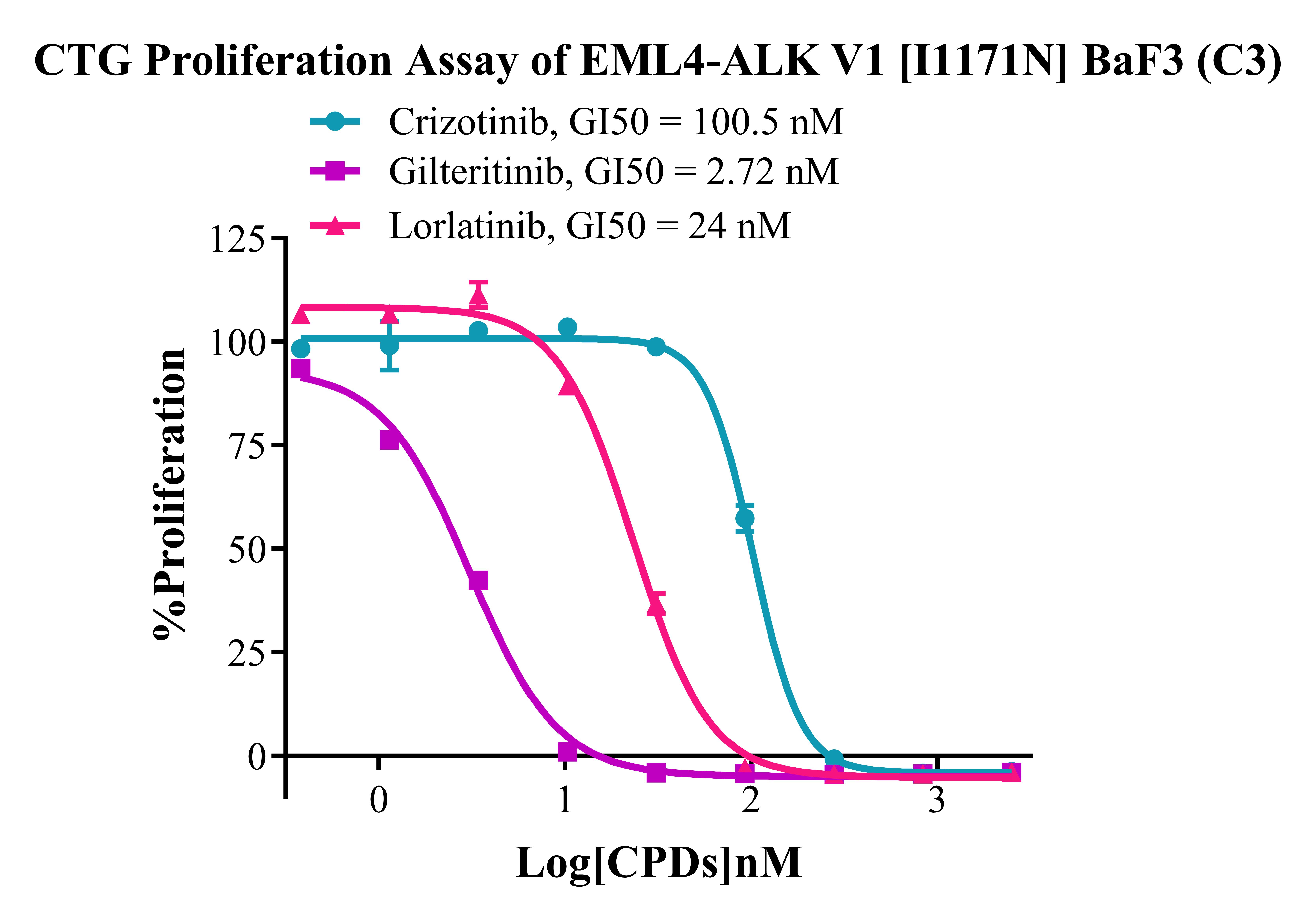 Figure 5. CTG Proliferation Assay of EML4-ALK V1 I1171N BaF3(C3). |