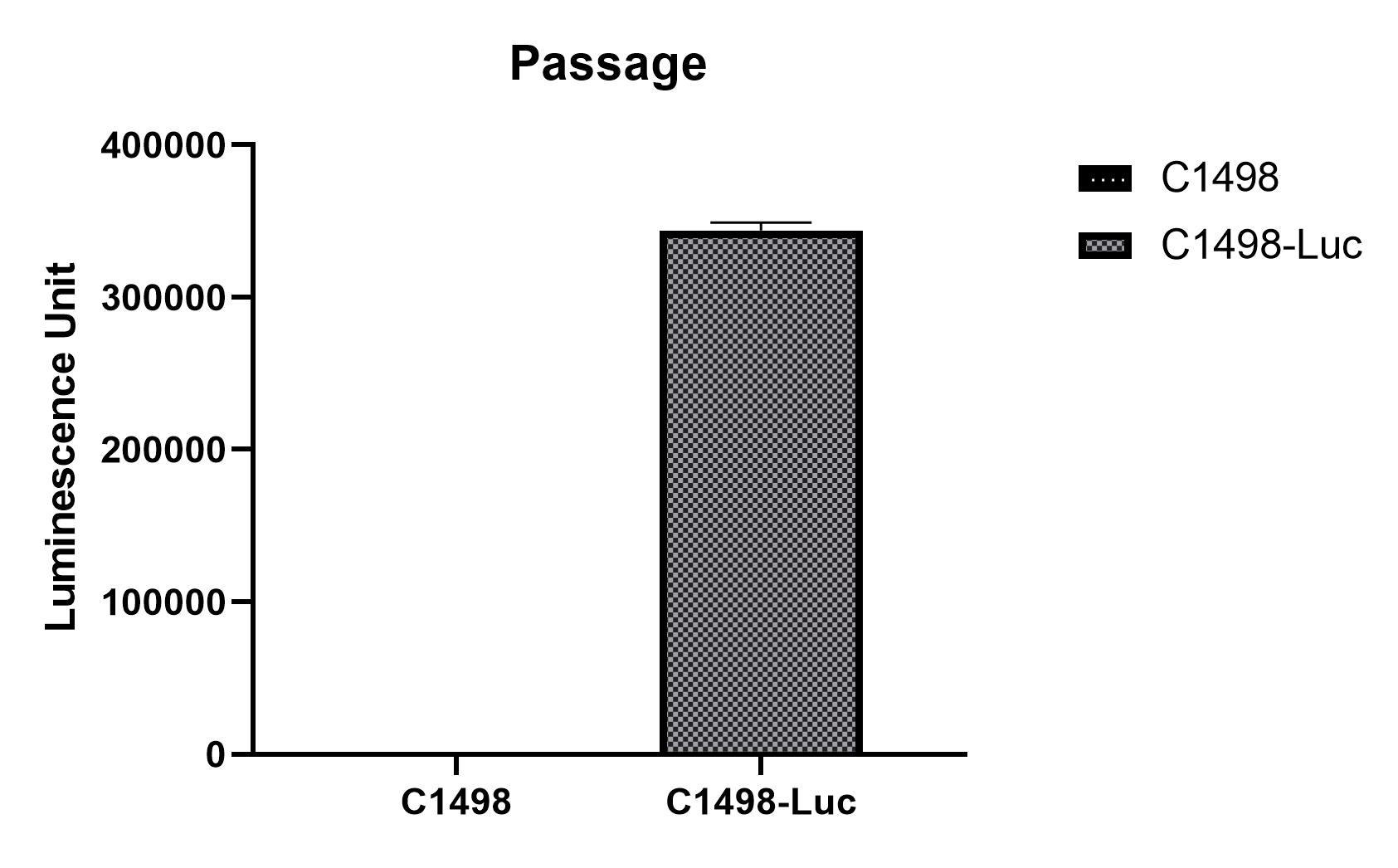 Figure 2. Stablity test results. C1498-Luc cells showed at least 32 passage stability with similar luminescence unit. |