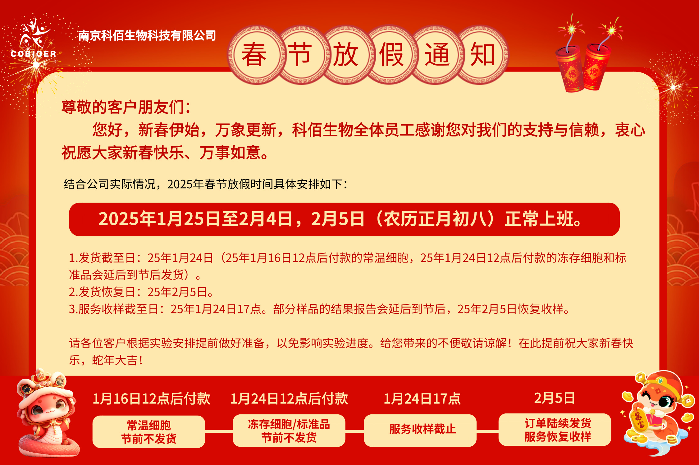 科佰生物春節(jié)放假發(fā)貨通知
