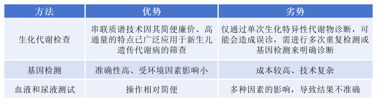 在《罕見病診療指南(2019年版)》中,臨床診斷甲基丙二酸血癥在臨床懷疑甲基丙二酸血癥時,血氨基酸、酯酰肉堿譜分析示丙酰肉堿C3增高,C3/C0比值增高,C3/乙酰肉堿C2比值增高,或伴有游離肉堿C0降低;尿有機酸分析示甲基丙二酸和甲基枸櫞酸顯著增高,即可臨床診斷MMA。基因診斷選擇包括MMACHC、MUT、MMAA、MMAB、MCEE、MMADHC等基因panel或全外顯子測序等高通量測序分析,檢出2個等位基因致病突變具有確診意義。