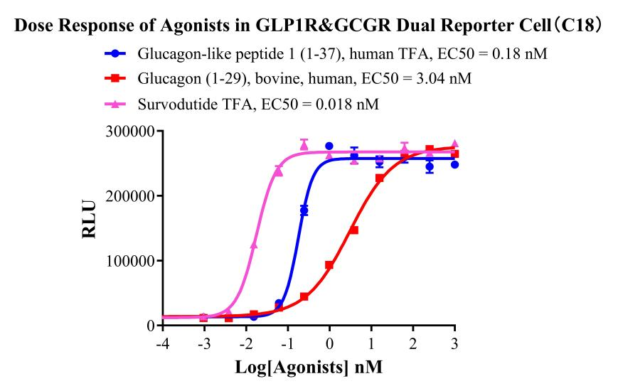 Figure 2:GLP1R&GCGR Dual Reporter Cell功能驗(yàn)證結(jié)果
