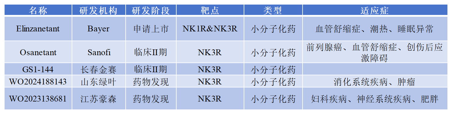 Fezolinetant(非唑奈坦)是全球首個(gè)可口服的非激素類NK3R拮抗劑,用于治療因絕經(jīng)引起的中度至重度血管舒縮癥狀(VMS)。2024年12月22日,長春金賽藥業(yè)旗下產(chǎn)品GS1-144開展治療絕經(jīng)期血管舒縮癥的二期臨床試驗(yàn)。