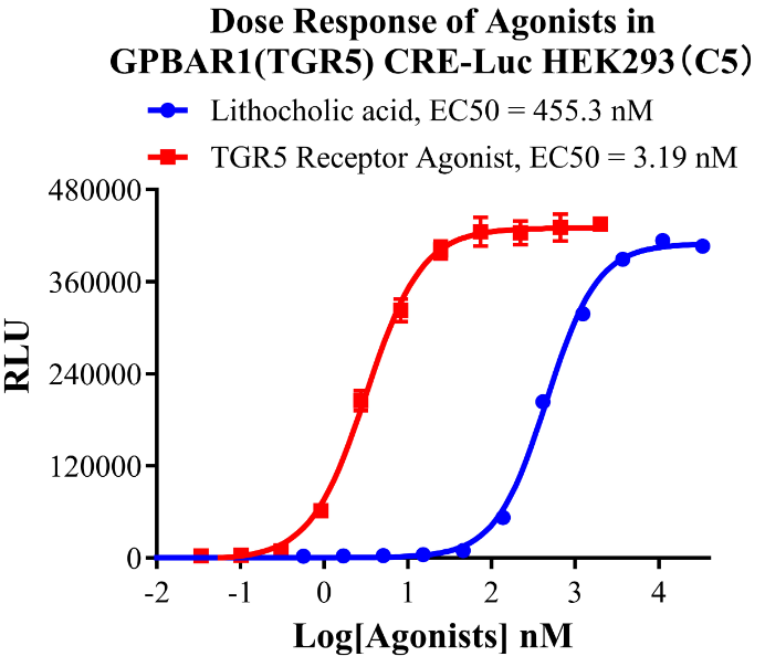 為了助力TGR5藥物的研發(fā),科佰生物及時(shí)開發(fā)了基于CREB/cAMP信號(hào)通路的TGR5細(xì)胞模型,用于候選藥物早期機(jī)理研究。