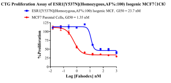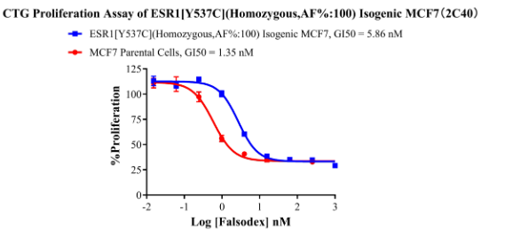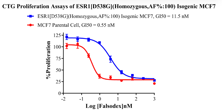 Figure 5. CTG Proliferation Assays of ESR1 [D538G](Heterozygous,AF%:66.7) Isogenie MCF7.